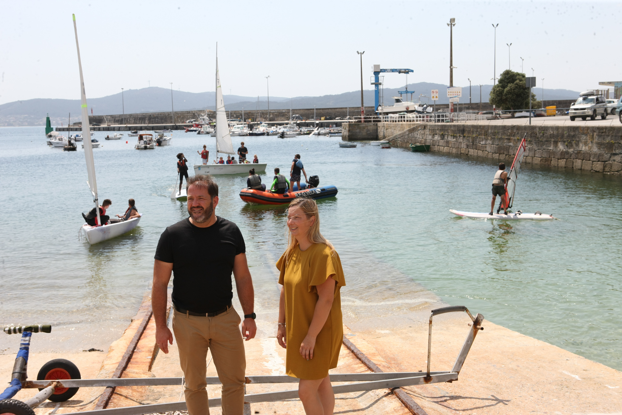 A deputada de Deportes, Cristina Capelán, e o alcalde de Ponteceso, Lois García Carballido, deron a benvida hoxe no Porto de Corme aos participantes da cuarta quenda da Campaña de Vela 2022 da Deputación, a máis numerosa ata o de agora en canto a inscricións, con 32 mozas e mozos anotados, 16 na quenda de mañá e outros 16 na de tarde.