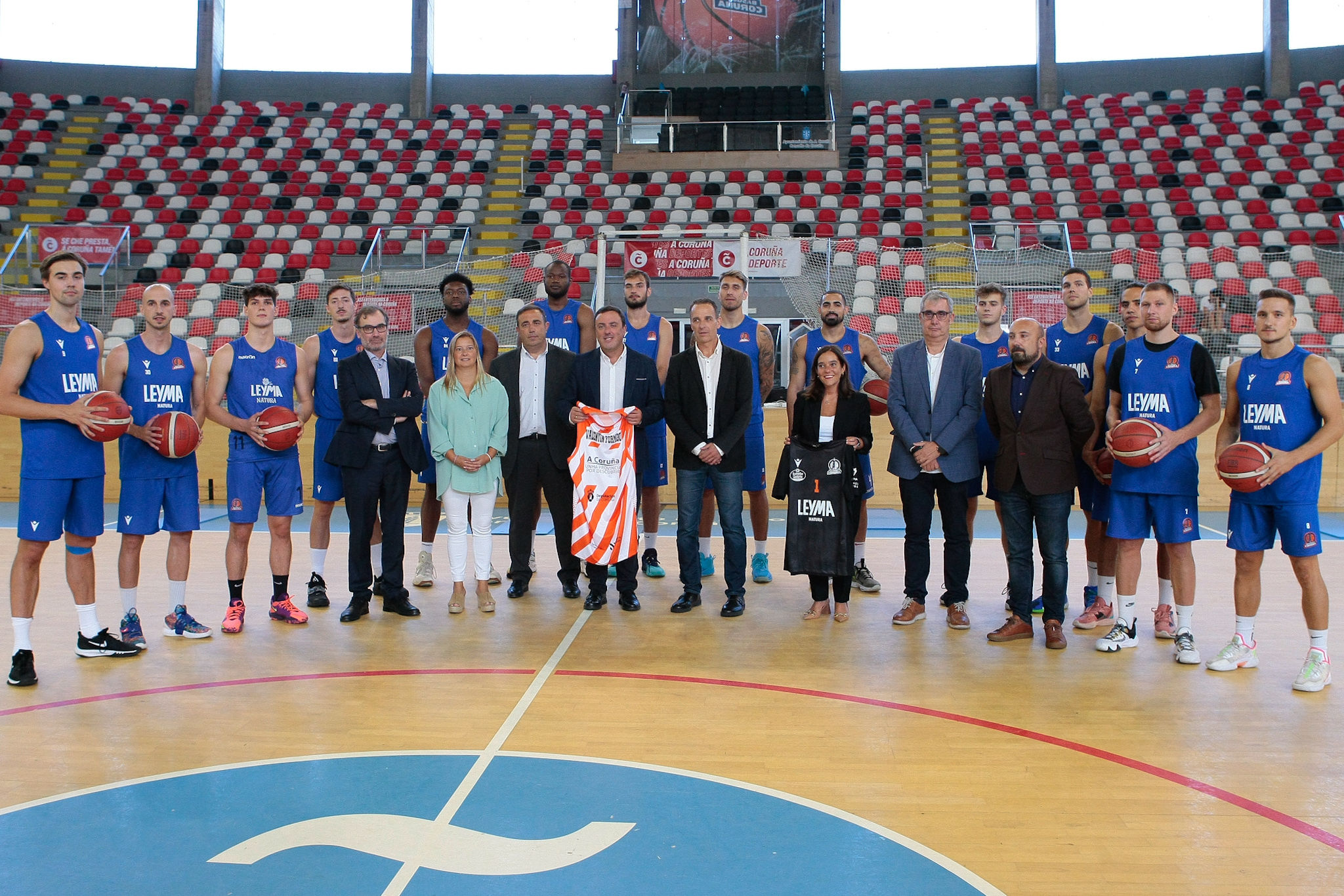 Valentín González Formoso visitou hoxe no Pazo dos Deportes de Riazor da Coruña ao Leyma Basquet Coruña no seu primeiro adestramento da temporada. O encontro serviu para dar a coñecer o novo convenio acadado co club de baloncesto que compite na Liga LEB OURO, a segunda categoría a nivel nacional, e co que a Deputación da Coruña se aliou para promover o deporte base e a provincia como destino turístico.