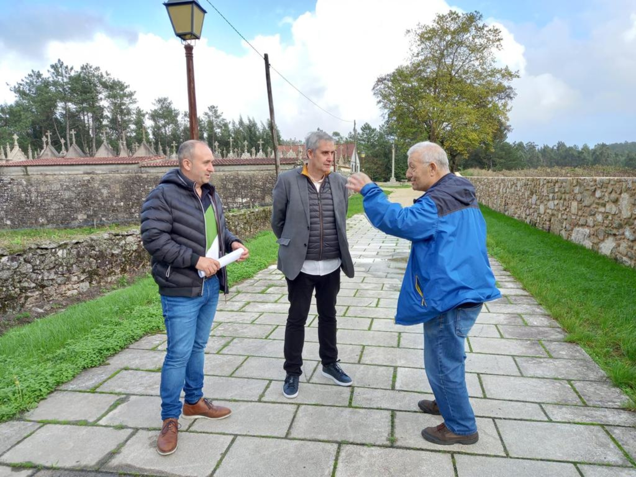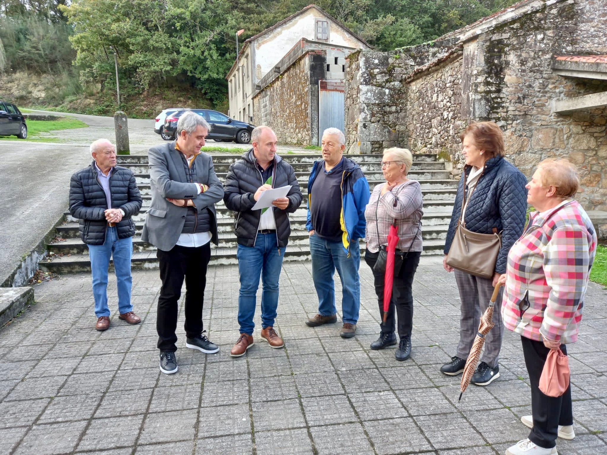 Coa directiva da Asociación de Veciños O Teleclub de Liñaio, o deputado e o alcalde supervisaron as obras de rehabilitación do muro do adro parroquial de San Martiño, onde contan cun dos locais dos que dispón a entidade, a escola unitaria de Liñaio, fundada por emigrantes da parroquia en Cuba en 1919.
