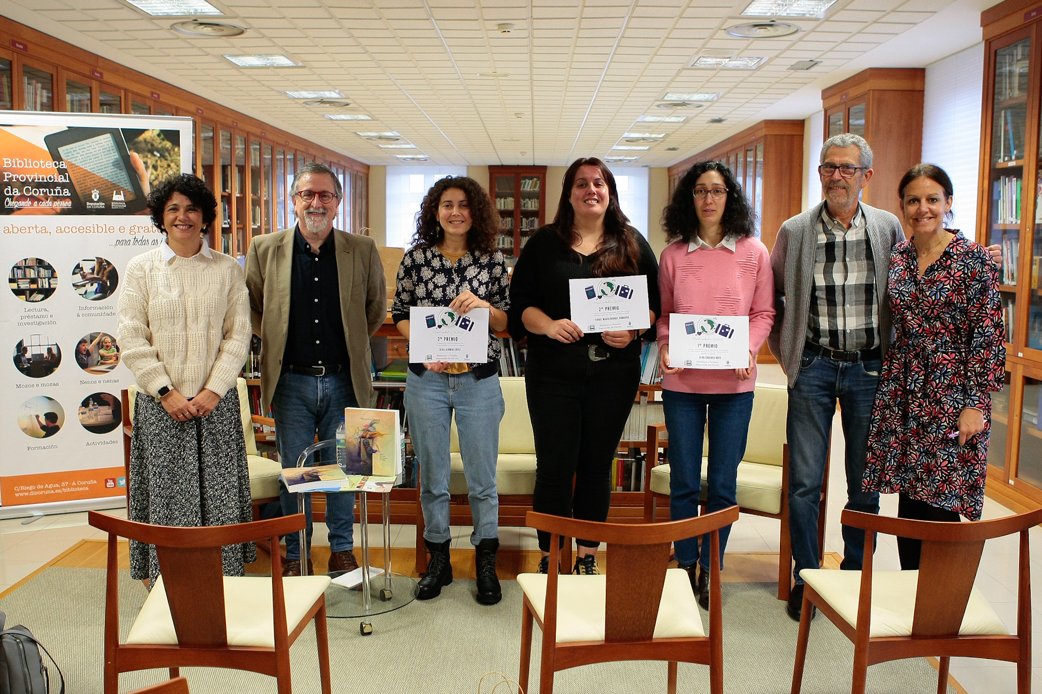 As tres premiadas recolleron esta mañá os seus galardóns nun acto na Biblioteca provincial, no que tamén se presentou o libro que recolle todos os traballos presentados a este certame durante as edicións 2021 e 2022
