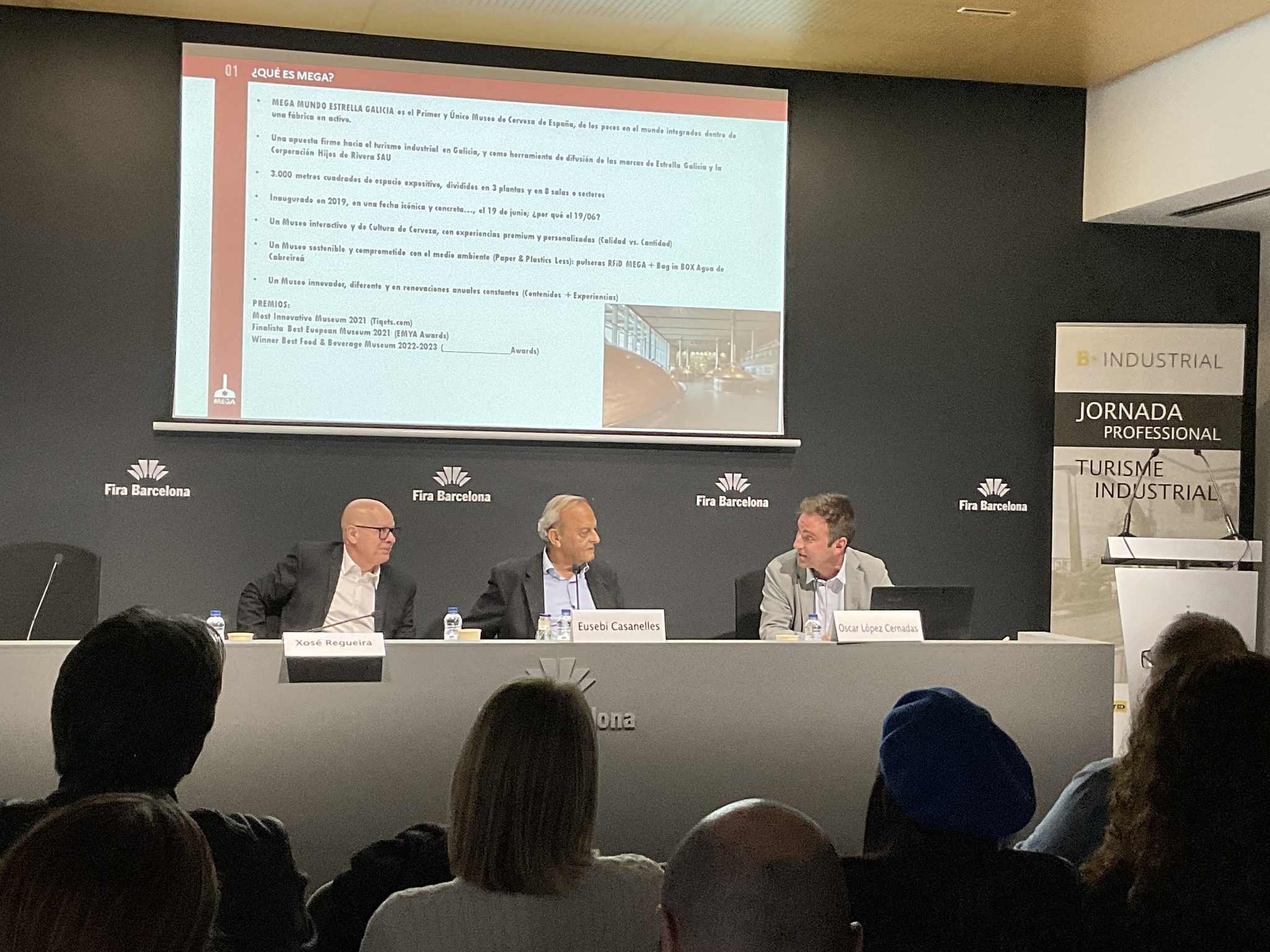 Precisamente no marco de B-Travel, Xosé Regueira, e o responsable comercial e de eventos do Museo de Estrella Galicia – MEGA, Óscar López, veñen de participar nas xornadas profesionais que tiveron lugar, baixo o epígrafe 'B-Industrial' durante todo o día de onte, e que contaron cunha serie de relatorios ao redor de distintas experiencias turísticas de todo o Estado que, na súa maioría, tiveron como eixe central o aproveitamento de recursos industriais. Ao igual que na pasada edición, a área provincial de Turismo volveu apostar por poñer en valor o Museo MEGA, por tratarse dunha experiencia turística pioneira e un referente, tanto a nivel galego como estatal, ao redor da tradición da produción da cervexa, mais tamén de empresa con raíces familiares.