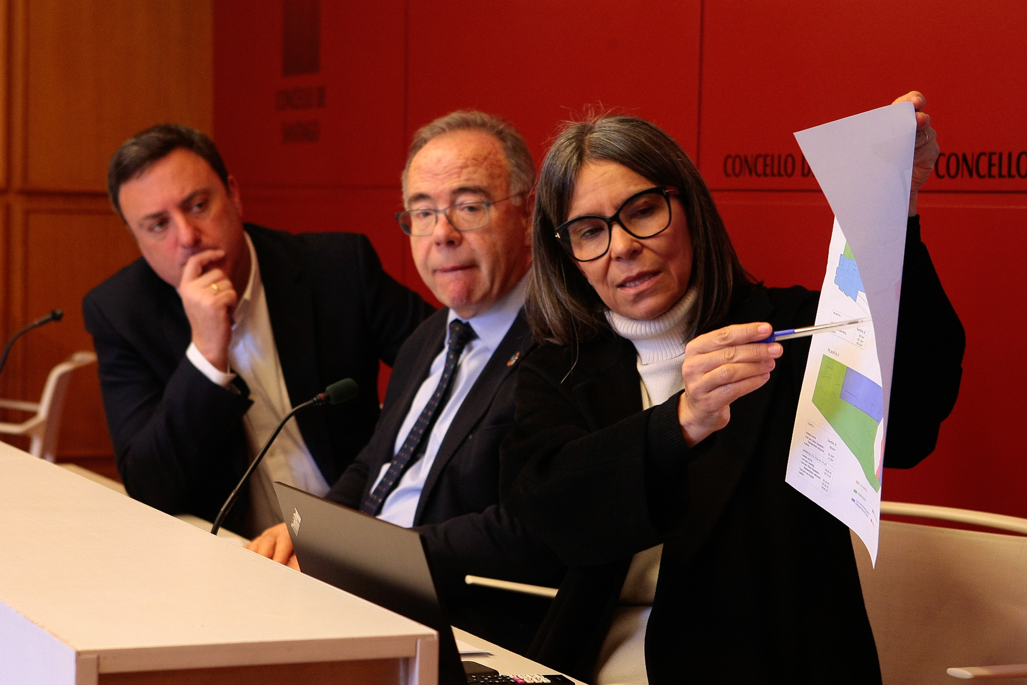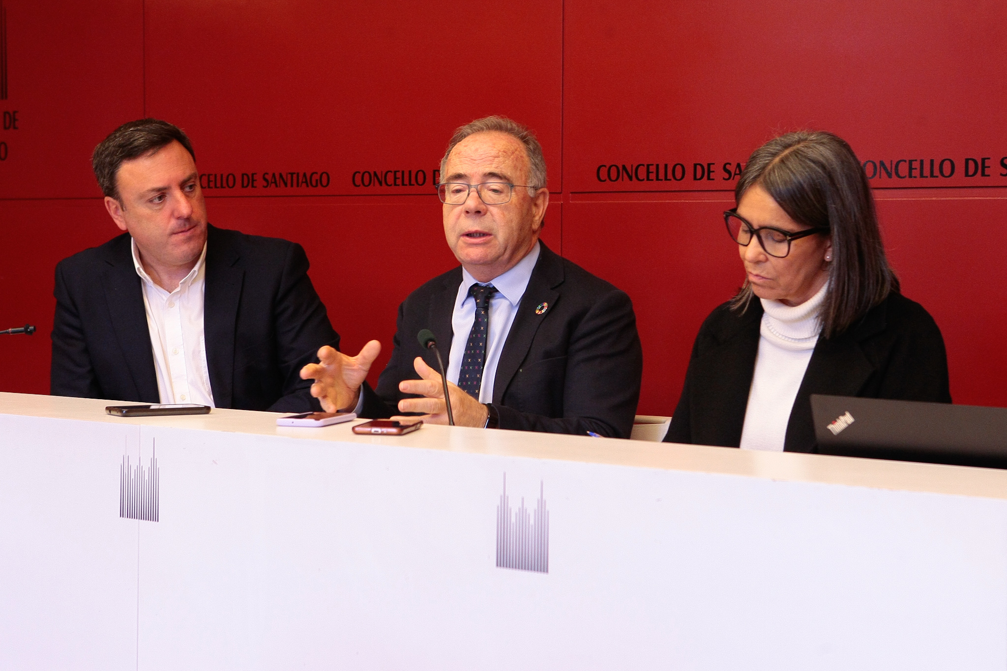 O presidente da Deputación da Coruña, Valentín González Formoso, o alcalde de Santiago de Compostela, Xosé Sánchez Bugallo, e a concelleira Mercedes Rosón deron a coñecer esta mañá os detalles do ambicioso plan de ambas institucións para o uso futuro da Casa da Xuventude, en pleno centro do casco histórico compostelán.