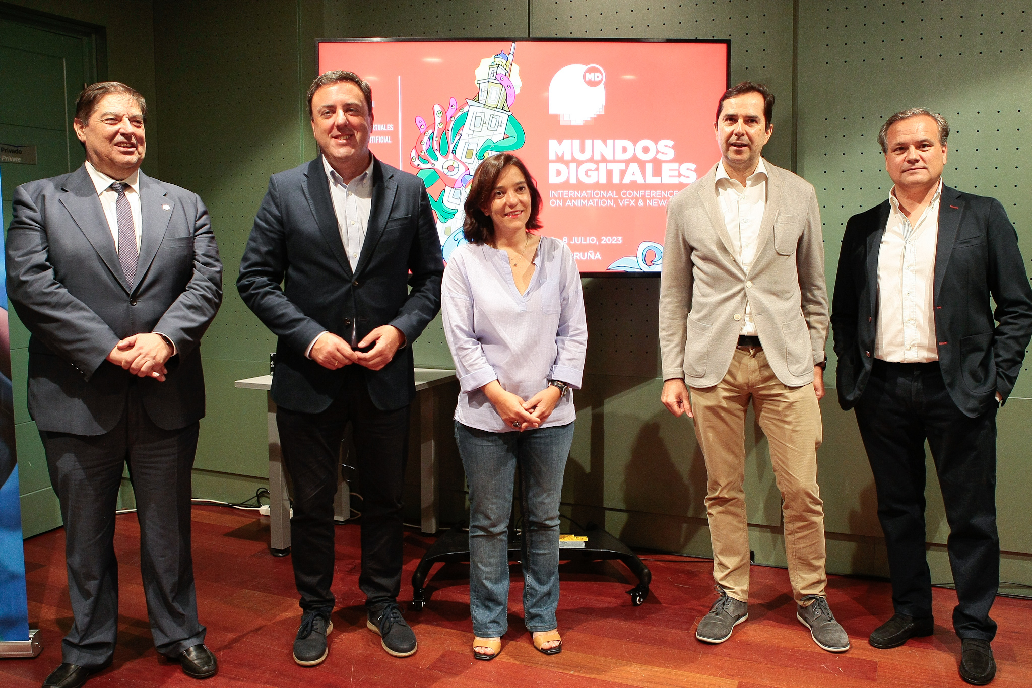 O presidente da Deputación da Coruña, Valentín González Formoso, participou hoxe en Palexco na xornada de presentación do XXI Congreso internacional de animación, efectos visuais e novos media de Mundos Digitales, xunto con Julio Abalde, reitor da Universidade da Coruña; Inés Rey, alcaldesa da Coruña; Jacobo Sutil director de AGADIC, e Manuel Meijide, director de Mundos Digitales.