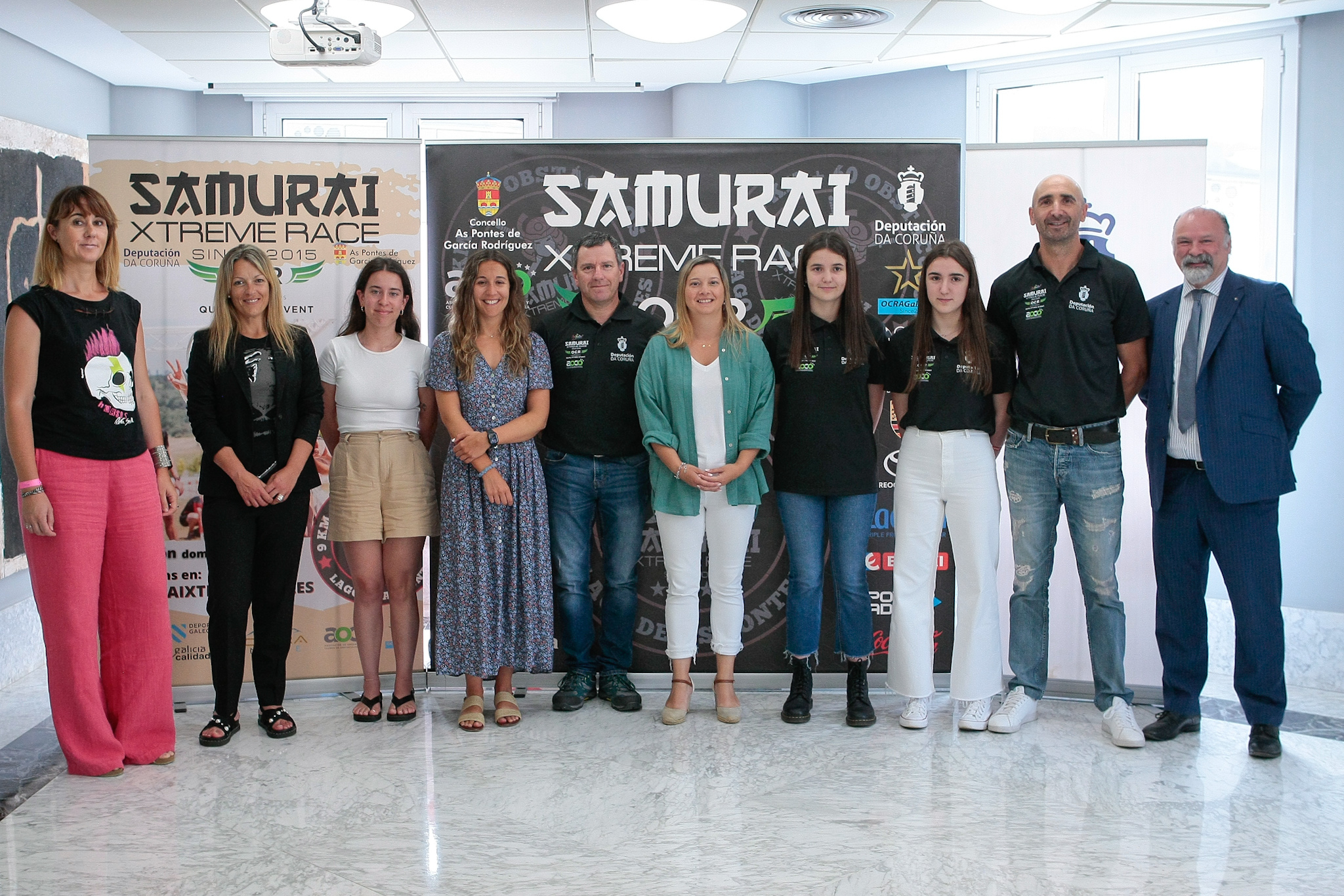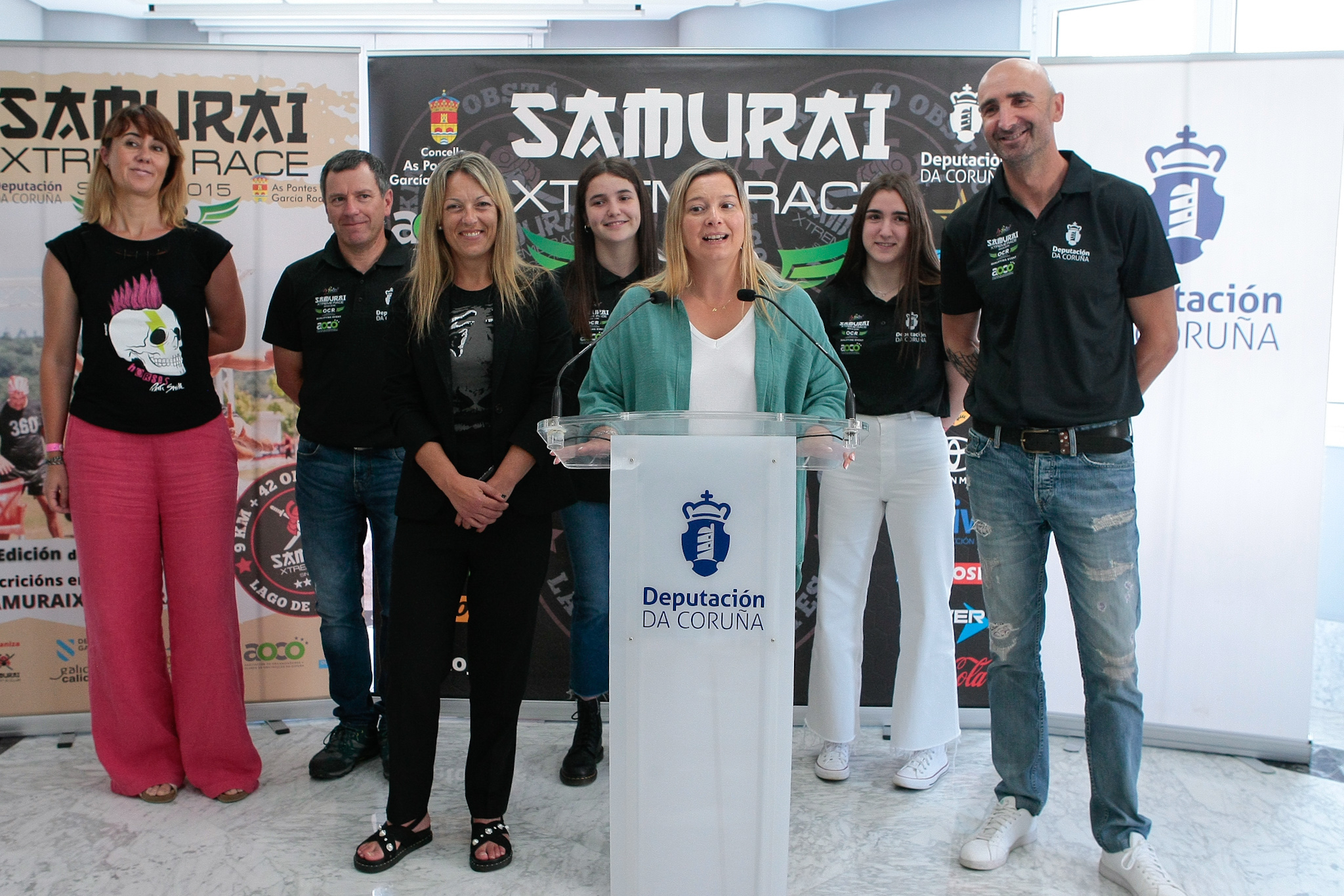 A deputada en funcións de Deportes, Cristina Capelán Cancelo, o presidente do Samurai Sports Club, José Rodríguez, e as concelleiras das Pontes Ana Pena e Elena López presentaron hoxe na sede da Deputación da Coruña a edición 2023 da Samurai Xtreme Race, que se celebrará no entorno do lago das Pontes o vindeiro domingo, 2 de xullo. A proba é puntuable para o Campionato Nacional e clasificatoria para o Campionato Mundial de Carreiras de Obstáculos que se celebrará en Mamooth Lakes, Califonia (Estados Unidos) en setembro.