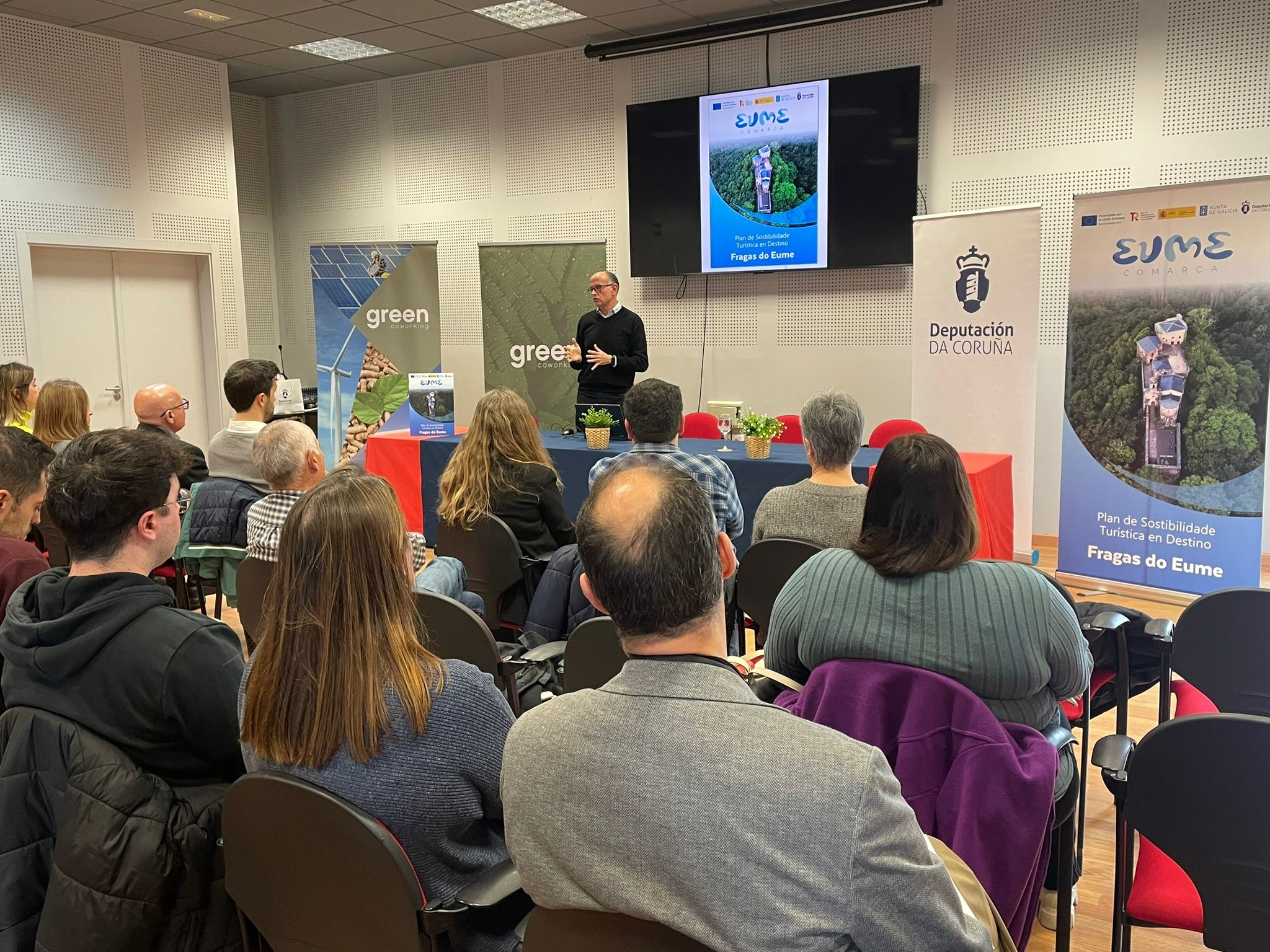 O Green Coworking das Pontes acolleu esta mañá a presentación o "Estudo de conectividade a internet da comarca do Eume", enmarcado nunha actuación contemplada no Plan de Sustentabilidade Turística en Destino "Fragas do Eume", promovido pola Deputación da Coruña e financiado con fondos do Plan de Recuperación, Transformación e Resiliencia (PRTR), financiado pola Unión Europea – NextGenerationEU.