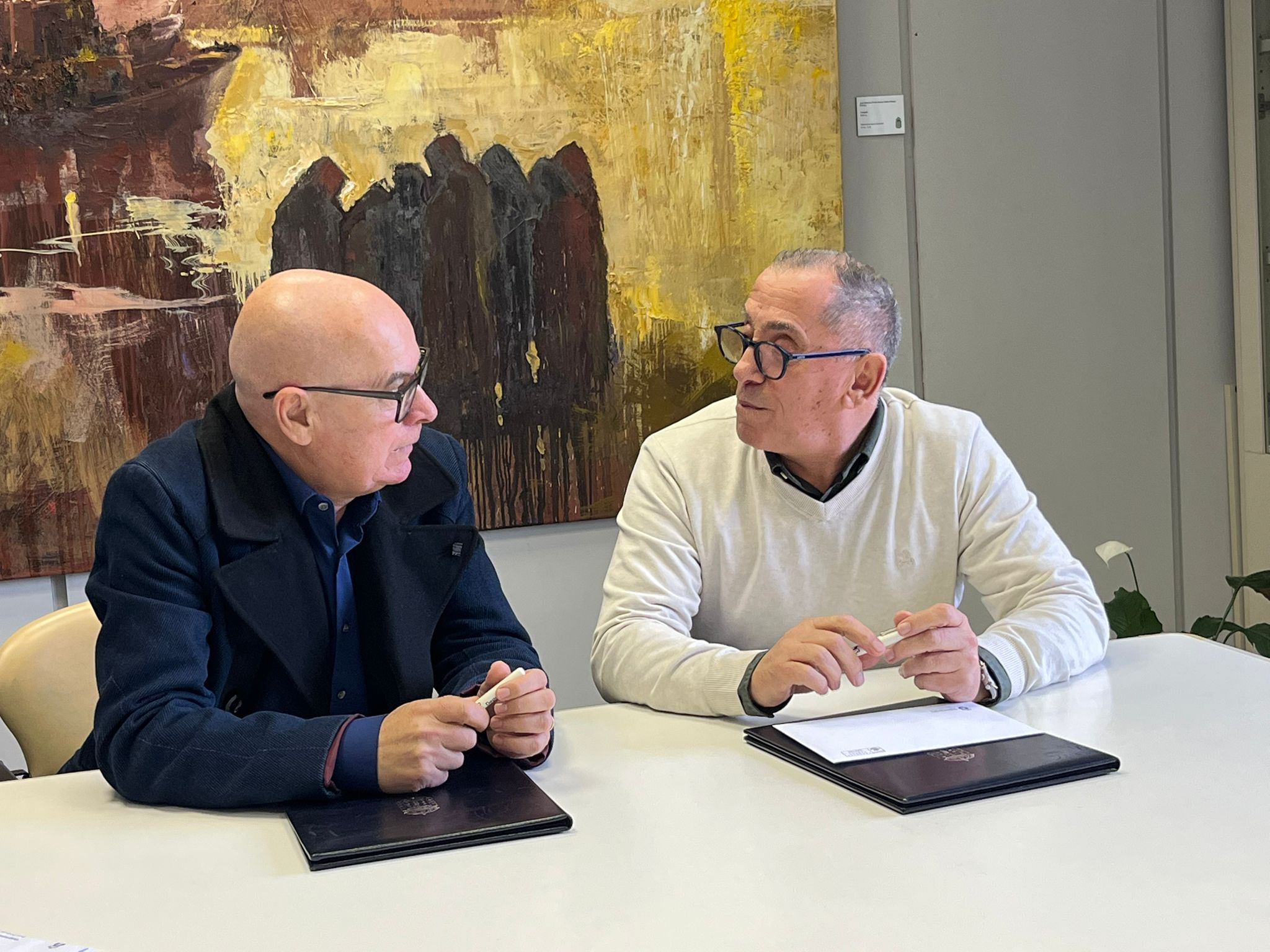 O vicepresidente, Xosé Regueira, e o alcalde de Carral, Javier Gestal, asinaron o convenio na sede provincial