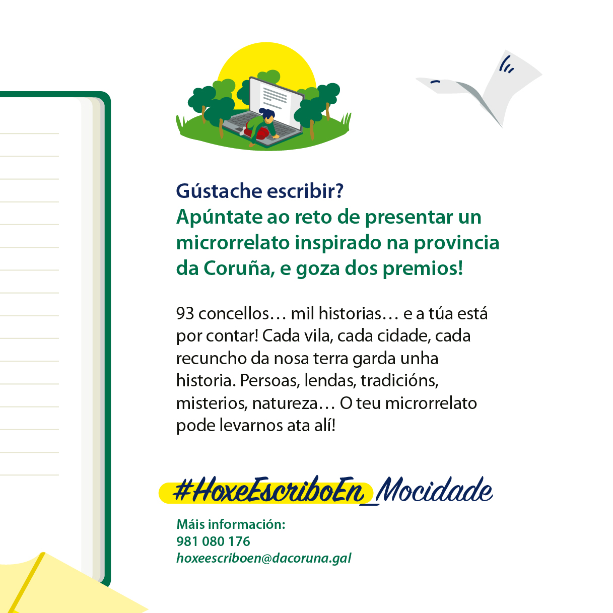 A Deputación da Coruña lanza unha edición do seu concurso de microrrelatos #HoxeEscriboEn para a mocidade