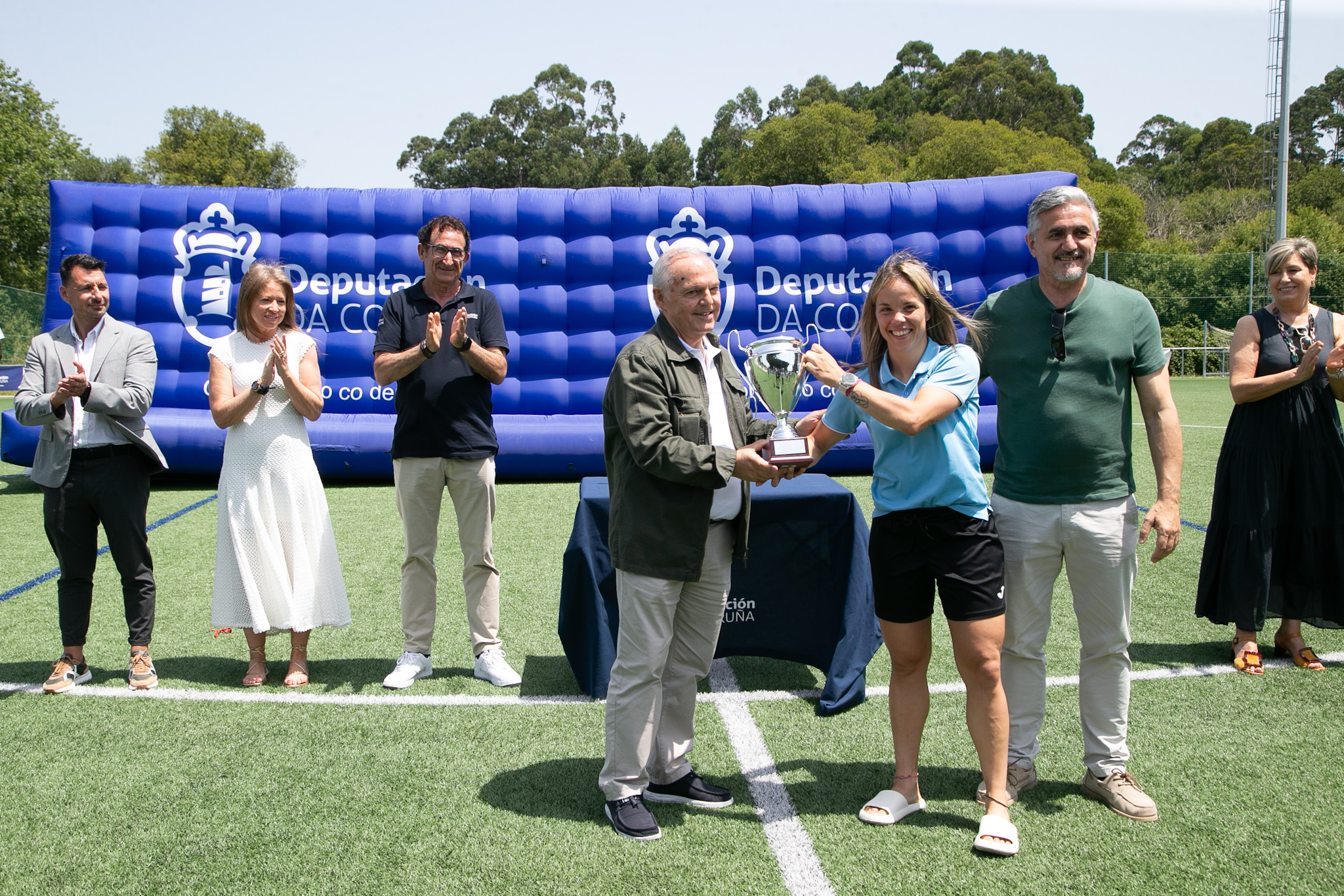 Tras os encontros, o deputado de Deportes, Antonio Leira; o vicepresidente da Federación Galega de Fútbol para A Coruña, Juan Luis Villamisar; a deputada provincial María del Mar Méndez; o concelleiro de Deportes de Boiro, Marcos Fajardo, e a concelleira de Deportes de Oleiros, Teresa Vázquez Maseda, entregaron os trofeos ás capitanas e capitáns dos equipos.