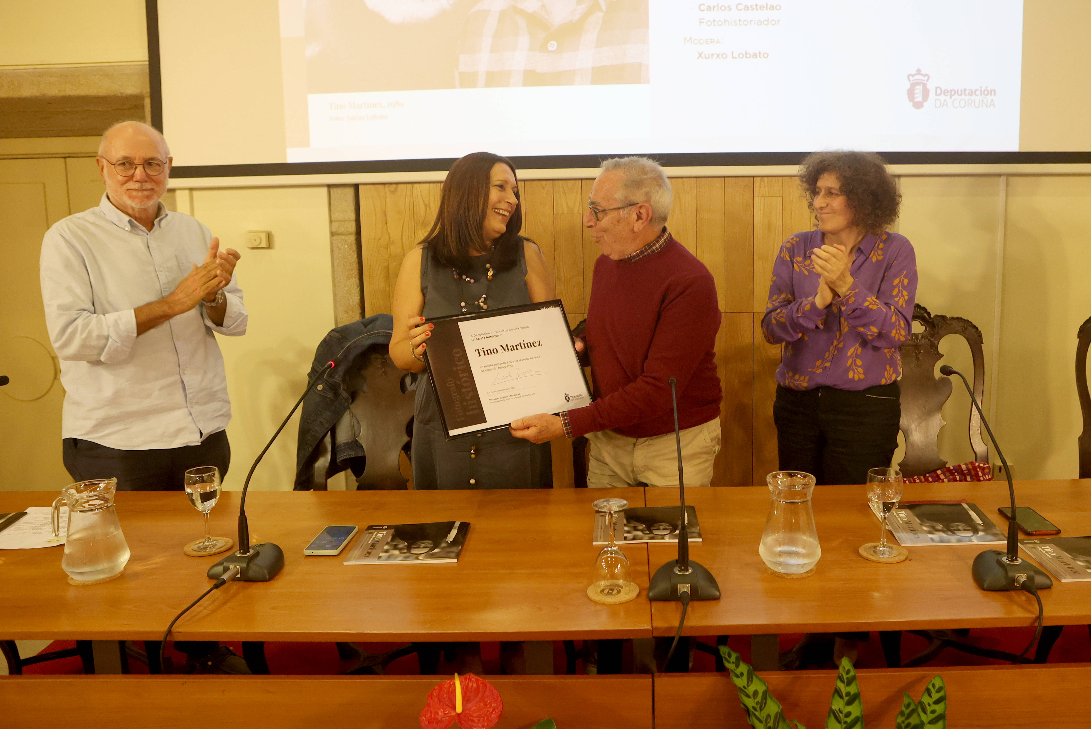 A Deputación da Coruña homenaxeou esta tarde, no Museo do Pobo Galego, a Tino Martínez, declarándoo fotógrafo histórico. Trátase dunha das actividades paralelas do 10º premio internacional Luís Ksado de creación fotográfica que convoca anualmente a entidade provincial. No acto participaron a deputada de cultura, Natividade González; a alcaldesa de Santiago, Goretti Sanmartín; o fotohistoriador Carlos Castelao; o comisario do premio Luís Ksado, Xurxo Lobato e o propio Tino Martínez.