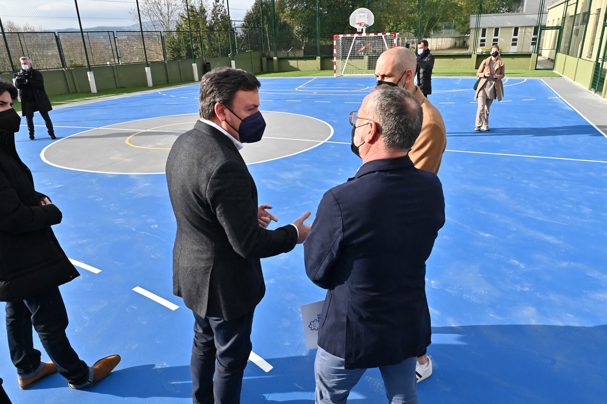Na pista polideportiva exterior, ademais de renovar a plataforma, marcáronse as pistas de fútbol e baloncesto e instaláronse novas porterías e canastras regulamentarias. Tamén se realizaron intervencións nos accesos e peches A maiores, colocáronse bancos e unha zona de céspede artificial con pérgola de madeira, creando unha zona de espera cuberta para as persoas asistentes e acompañantes.