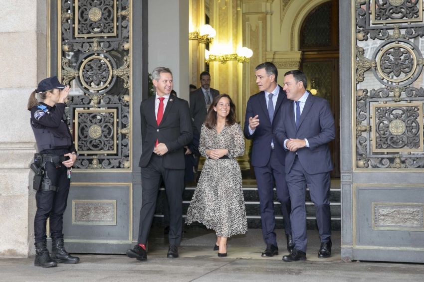 O presidente da Deputación, Valentín González Formoso, a alcaldesa da Coruña, Inés Rey García, recibiron no Pazo de María Pita o presidente do Goberno, Pedro Sánchez, á súa chegada á cidade e participaron posteriormente, xunto a outras autoridades, no acto oficial de saúdo aos participantes no cumio que acolle a cidade herculina nove anos despois da última celebrada.