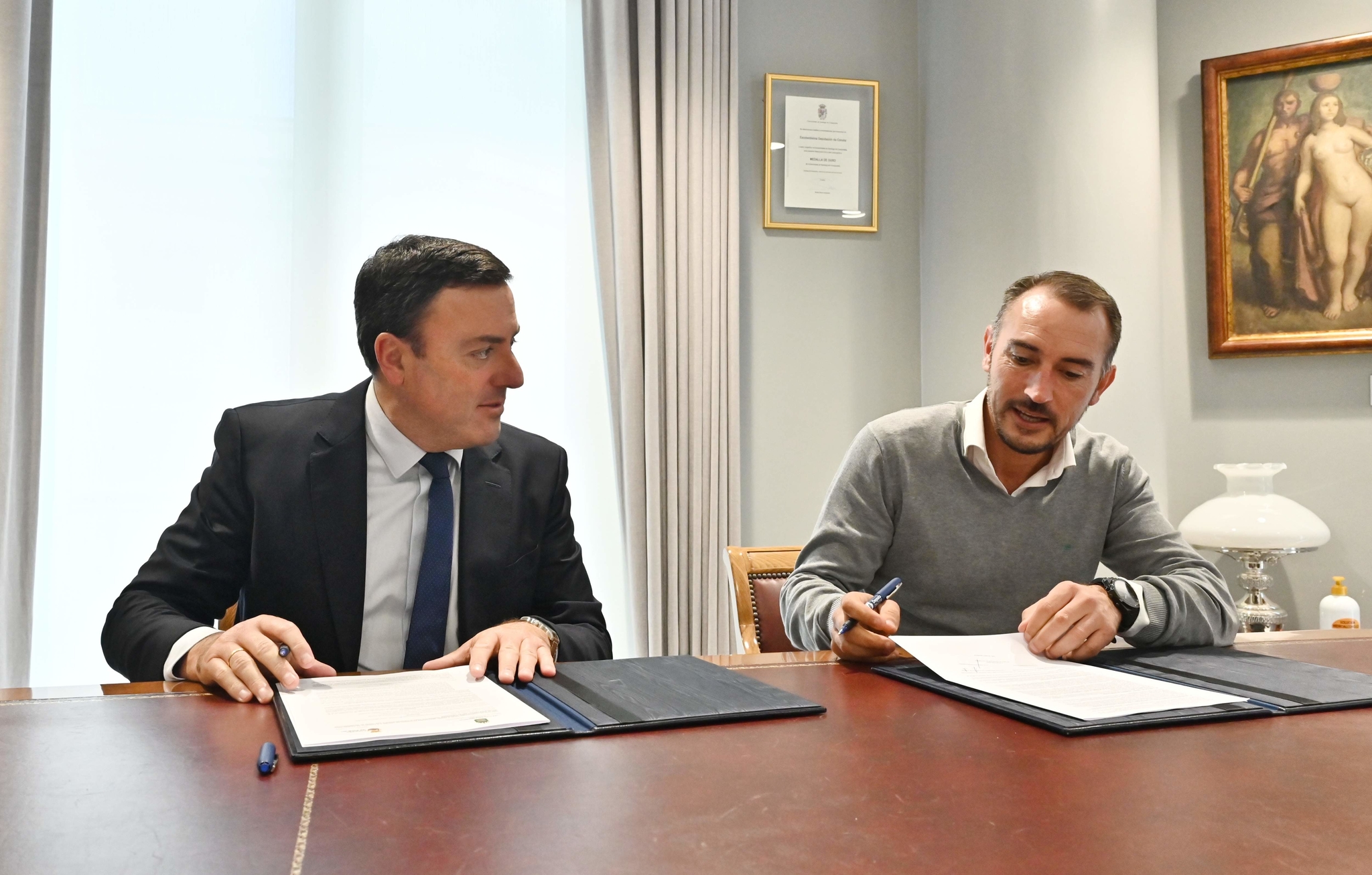 O presidente da Deputación, Valentín González Formoso, e o alcalde de Padrón, Antonio Fernández, asinaron hoxe o convenio polo que a administración provincial achegará 75.000 euros, o 68,2% do orzamento total da obra, que ascende a 109.959,55 euros.