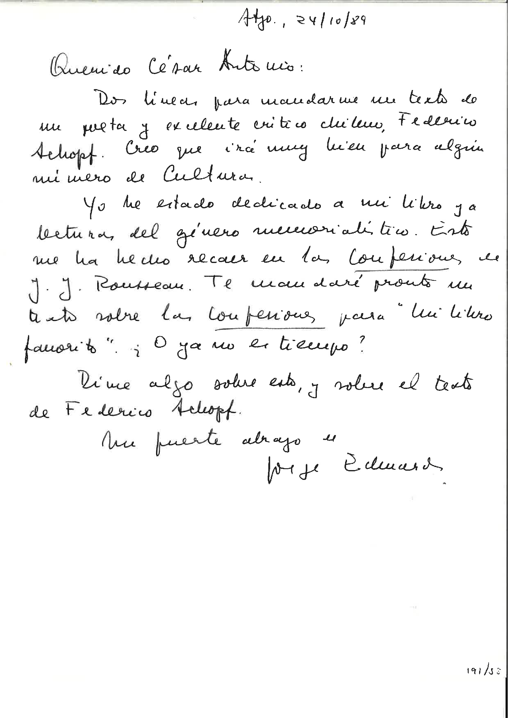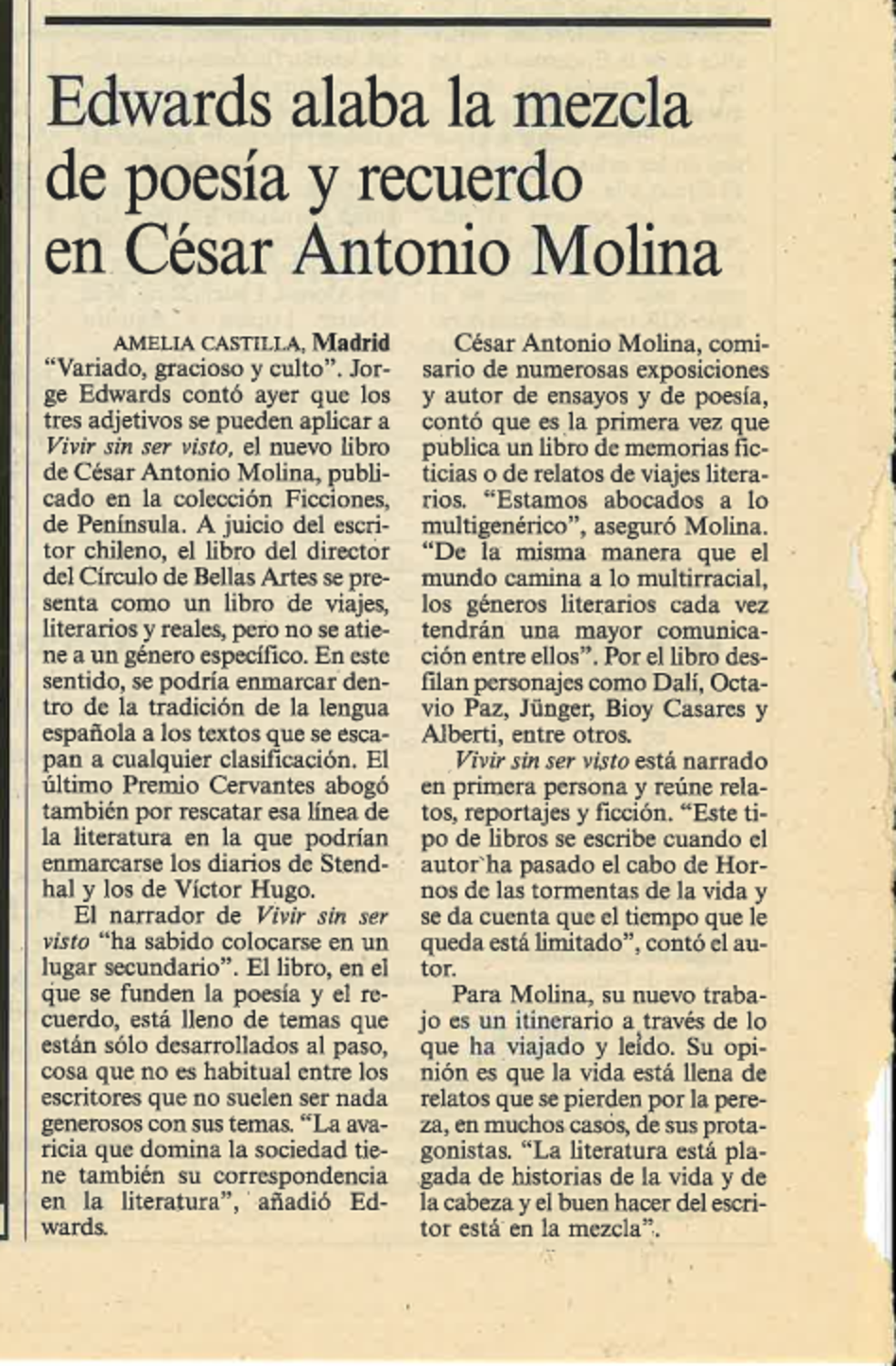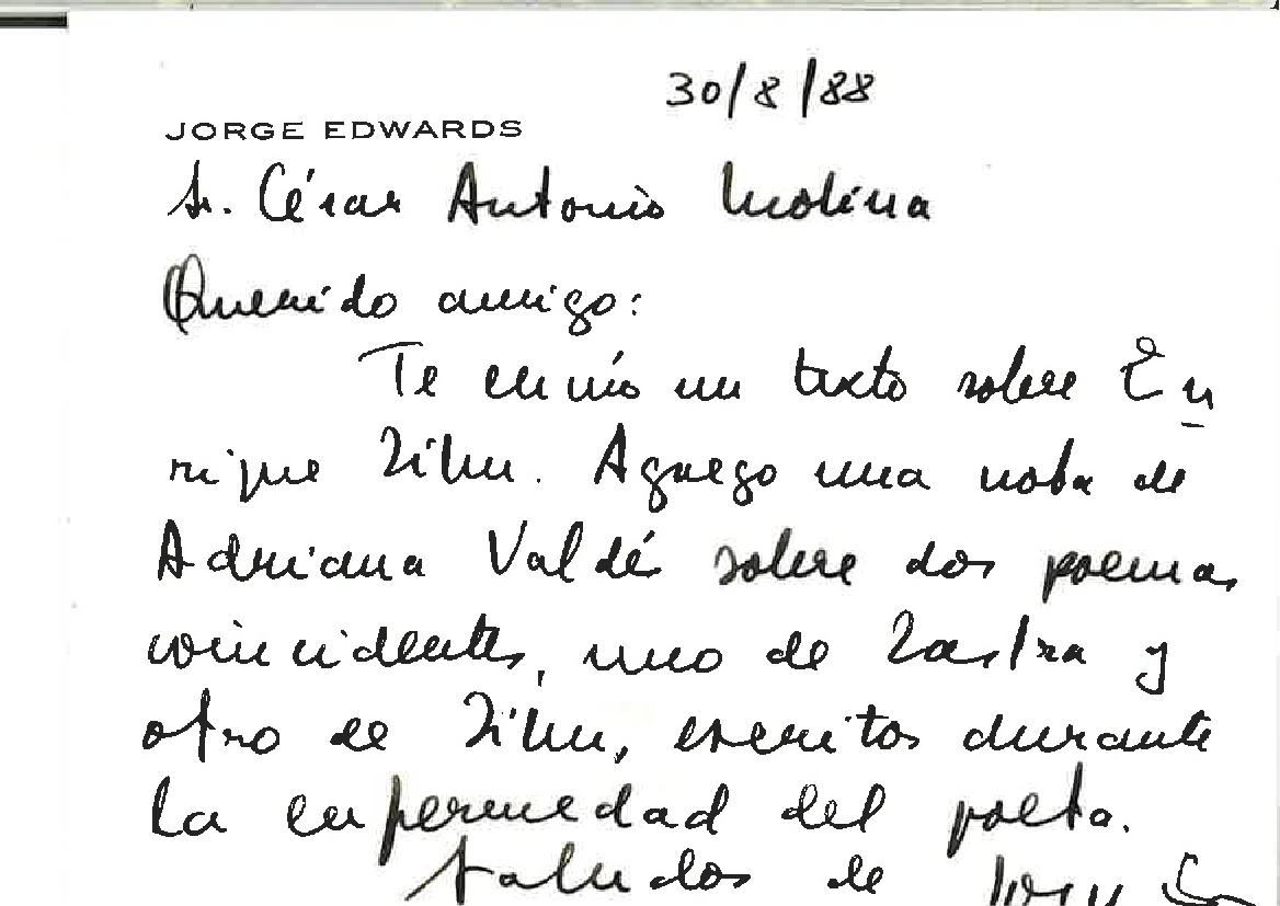 O pasado venres, falecía na súa casa de Madrid o escritor chileno-español Jorge Edwards. Prolífico escritor, interesouse na súa primeira mocidade pola poesía, á que paulatinamente iría desprazando a narrativa: novela, contos, crónicas, artigos xornalísticos...