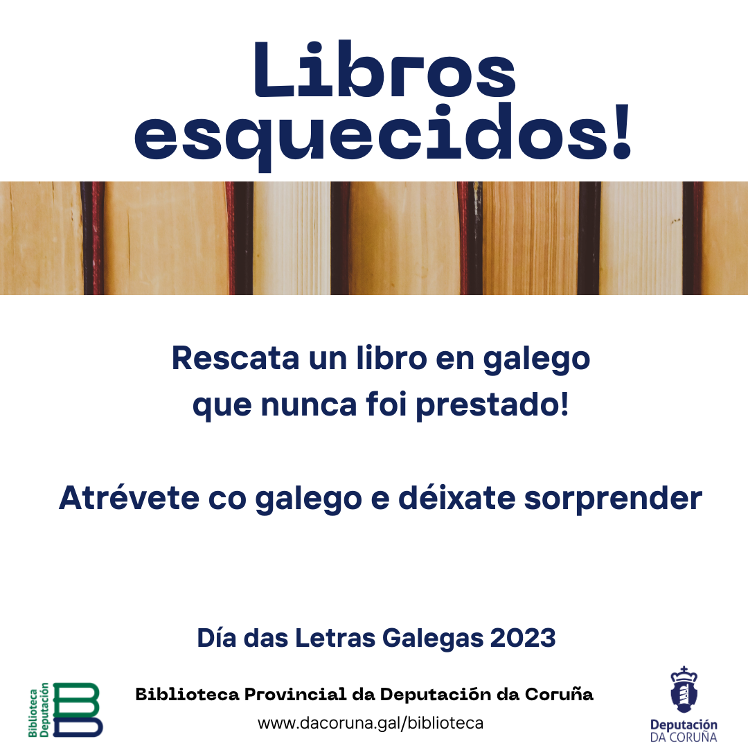 Colle prestado algúns dos libros en galego que nunca foron prestados, na Biblioteca ou na EbiblioDaCoruna. Na EbiblioDaCoruna ademáis podes participar no reto lector, as cinco persoas que máis horas lean de libros esquecidos, terán un agasallo!
