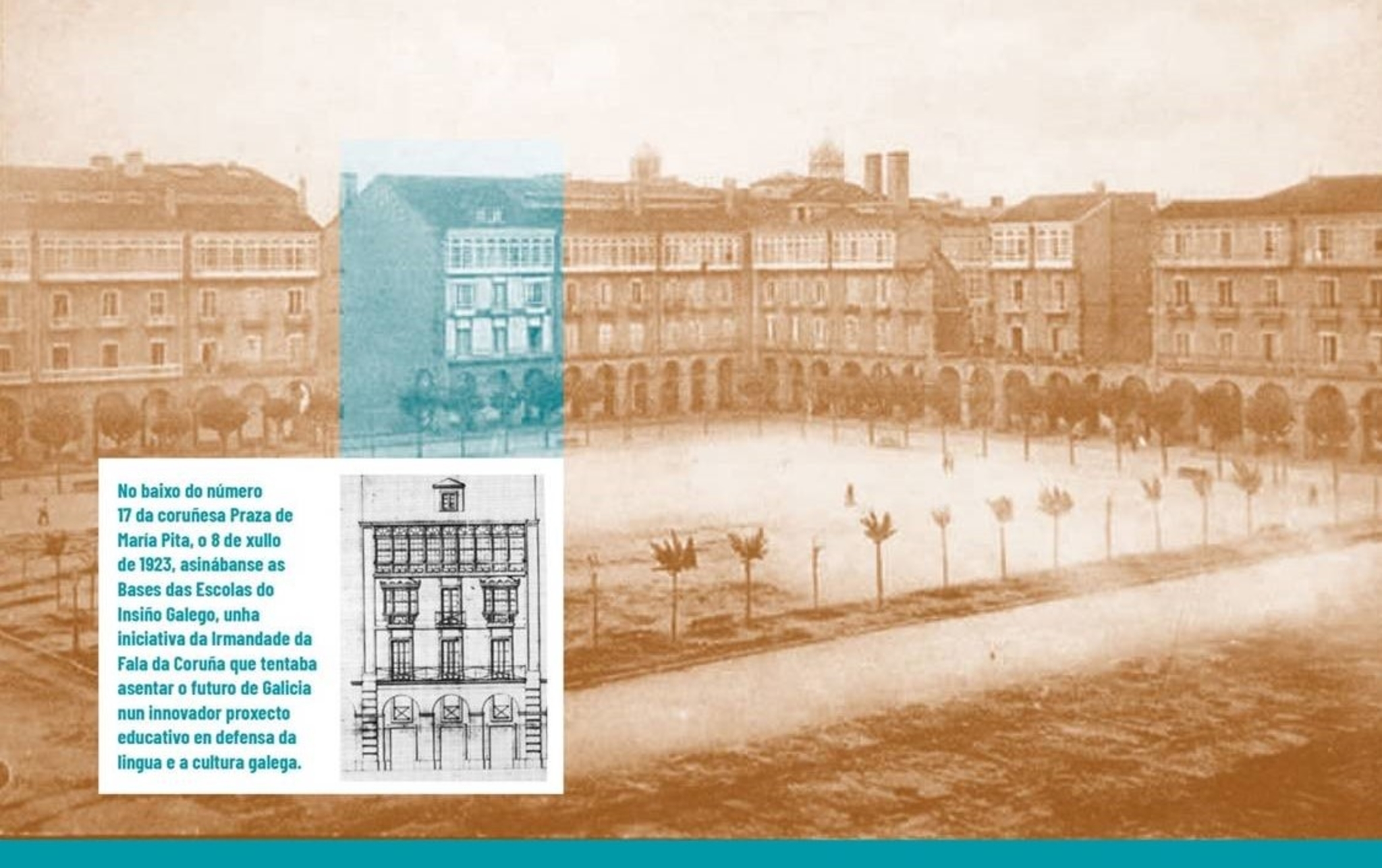 Nesa data, a Irmandade da Fala da Coruña impulsaba un dos seus principais proxectos de futuro para Galiza, as Escolas do Insiño Galego. No baixo do número 17 da Praza de María Pita, sede da asociación, firmábanse as bases dun plan educativo asentado en estudos e traballos previos, coma os do pedagogo pioneiro Xohán Vicente Viqueira, Vicente Risco, Victoriano Taibo e o editor e político Ánxel Casal, principal impulsor e alma do proxecto.