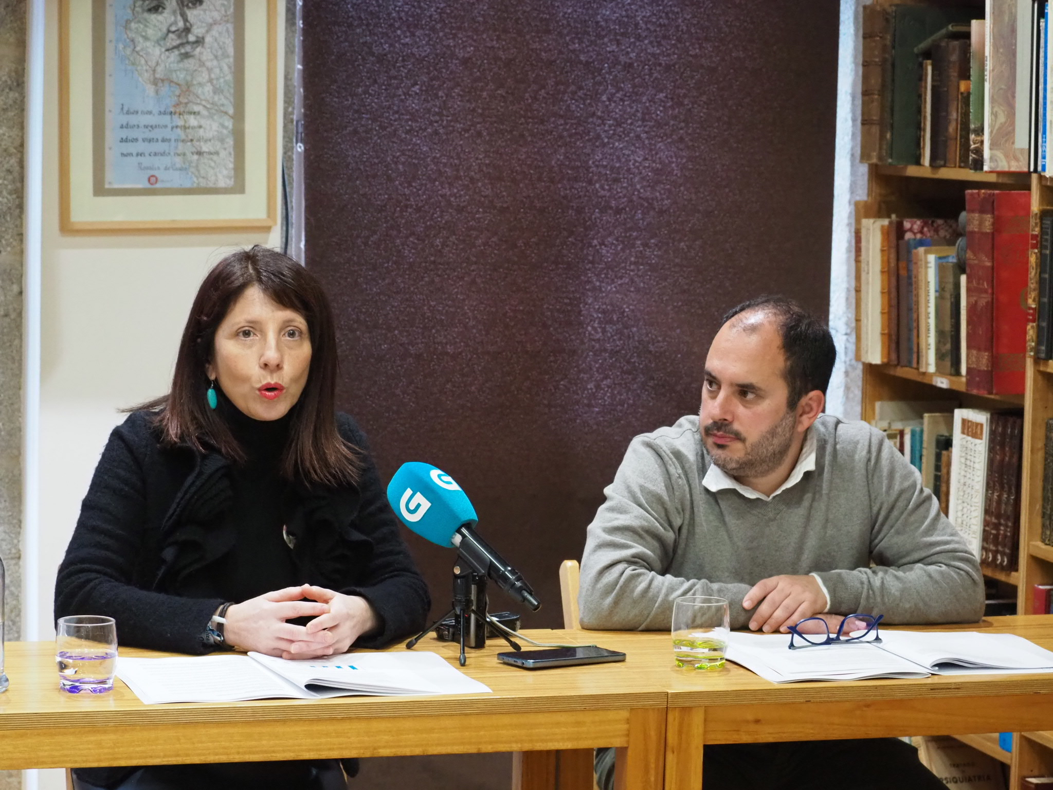 Marcos Maceira, presidente da Mesa pola Normalización Lingüística, e Soledad Agra, deputada de Lingua da Deputación da Coruña, presentaron en Compostela o Informe anual da Liña do Galego correspondente ao 2023. Un informe que forma parte do apoio da Deputación da Coruña á Liña do Galego: un servizo gratuíto ofrecido pola Mesa pola Normalización Lingüística dirixido a toda a poboación que tramita queixas cara ás institucións, empresas, etc., que vulneran os dereitos lingüísticos; así como parabéns para quen dea pasos cara a garantía do dereito a vivir en galego.