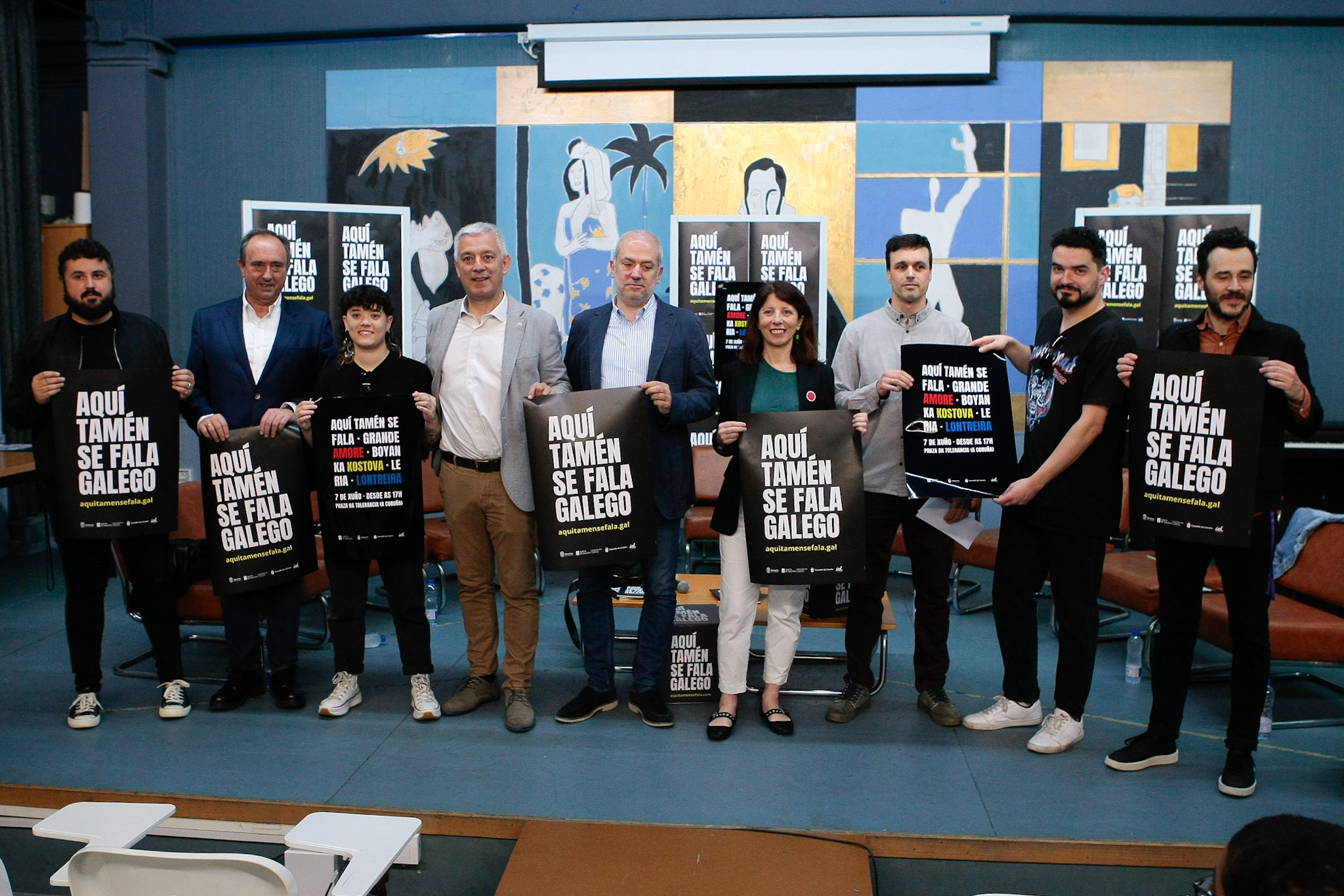"O festival, gratuíto, aberto a toda a mocidade e cidadanía, queda constituído na súa primeira edición por bandas do máis alto nivel da escena galega: Grande Amore, Boyanka Kostova, Lontreira e Leria, e dá continuidade ao traballo desenvolvido por "Aquí tamén se fala" no campo audiovisual que se divulga nas redes sociais de Instagram, Tiktok e Youtube baixo o cancelo #AquíTaménSeFala", sinalaron os responsables da organización.