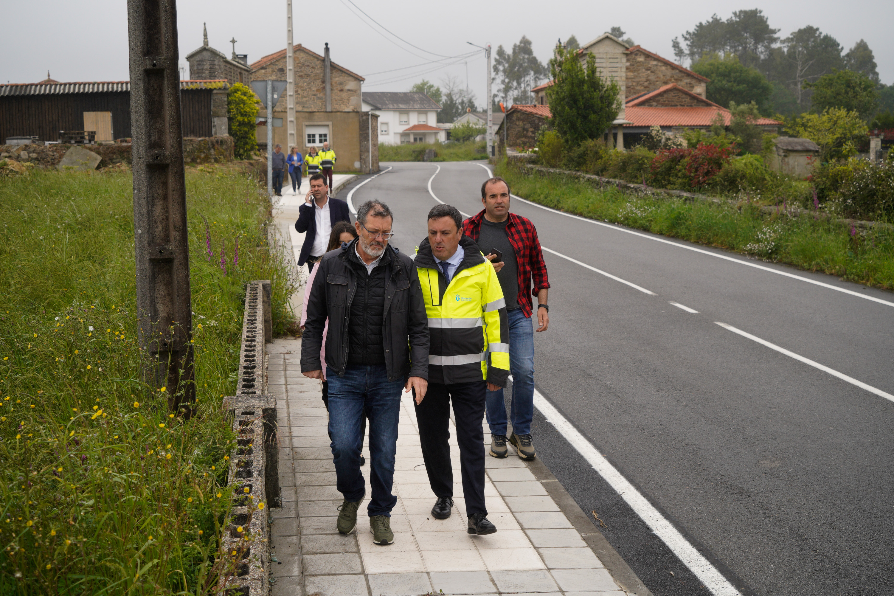 O presidente Valentín González Formoso visitou en primeiro lugar o Concello de Cabana de Bergantiños onde, acompañado do alcalde José Muíño Domínguez e da deputada de Vías de Obras, Mónica Rodríguez, supervisou o inicio das obras de mellora da seguridade viaria e construción dunha nova senda peonil da estrada DP 1406 de Neaño ao Allo por Cesullas.