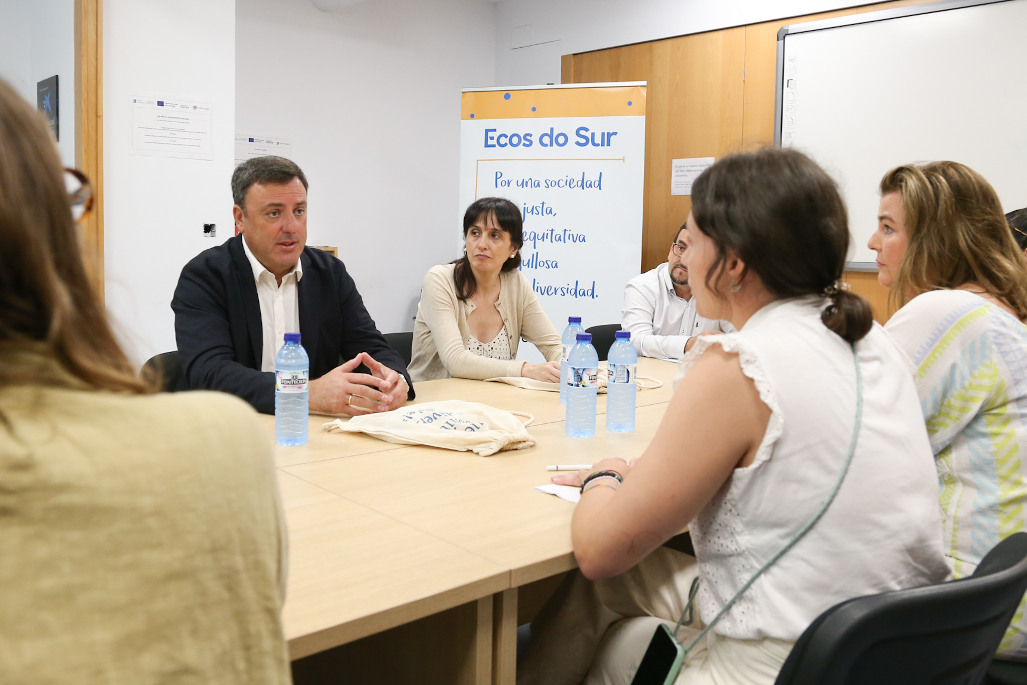 Formoso foi recibido pola vicepresidenta da entidade, Ana Ulloa, a directora xeral, Saray Durán, a responsable de Comunicación, Natalia Monje, e outras integrantes da xunta directiva, coas que coñeceu as instalacións de Ecos do Sur na avenida de Fisterra da cidade herculina, así como a historia da entidade o traballo que desde 1991 desenvolven no eido da integración social, especialmente vinculada ao acceso de dereitos da cidadanía e participación social de persoas migrantes, mulleres e colectivos en especial situación de vulnerabilidade.