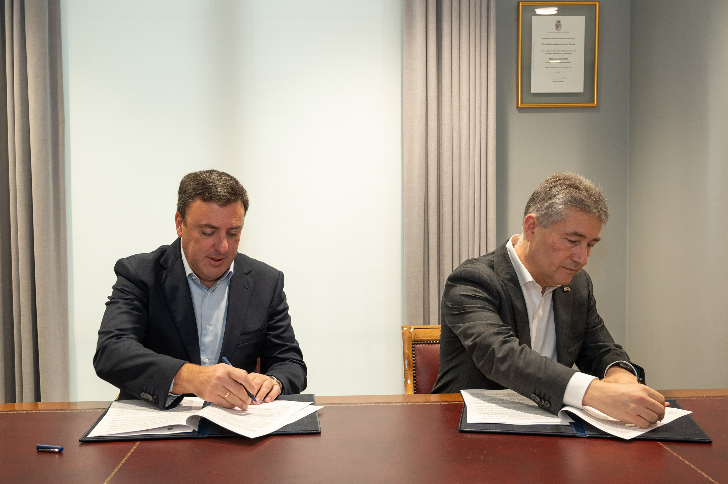 O presidente do ente provincial, Valentín González Formoso, e o reitor da UDC, Ricardo Cao, asinaron o convenio de colaboración, que contempla diferentes liñas de actuación no ámbito da cultura organizadas pola institución académica coruña. O orzamento total do programa ascende a 137.500 euros, do que a Deputación achega o 80%.