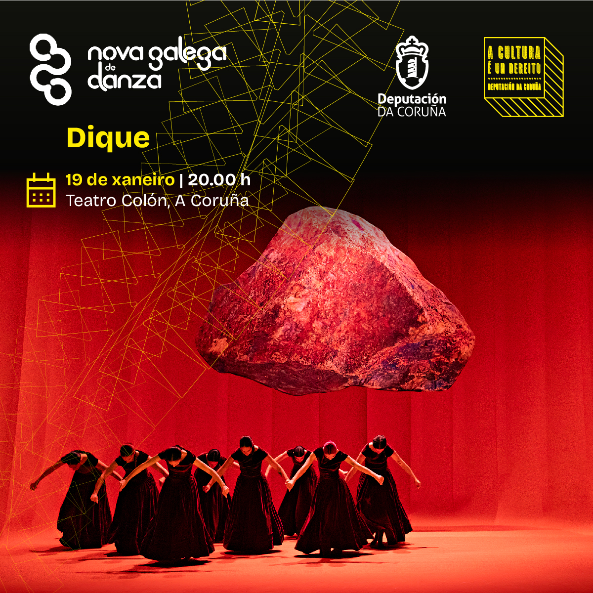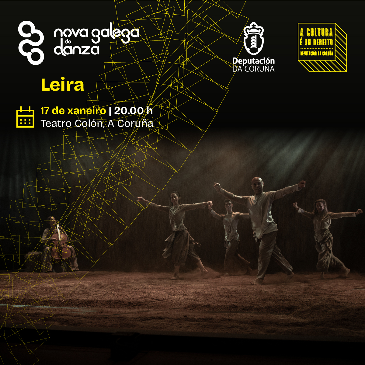 A compañía Nova Galega de Danza, baixo a dirección artística de Jaime Pablo Díaz, desembarca na Coruña grazas ao apoio da Deputación este mes de xaneiro para presentar no Teatro Colón un fito único: unha antoloxía con tres das súas pezas máis celebradas e recentes: "Leira", "Berro" e "Dique". Nesta 'Antoloxía de Nova Galega de Danza', a muller toma centro do escenario nunha viaxe a través da terra, a raíz, a memoria, a tradición, a resiliencia, o empoderamento e a fortaleza.