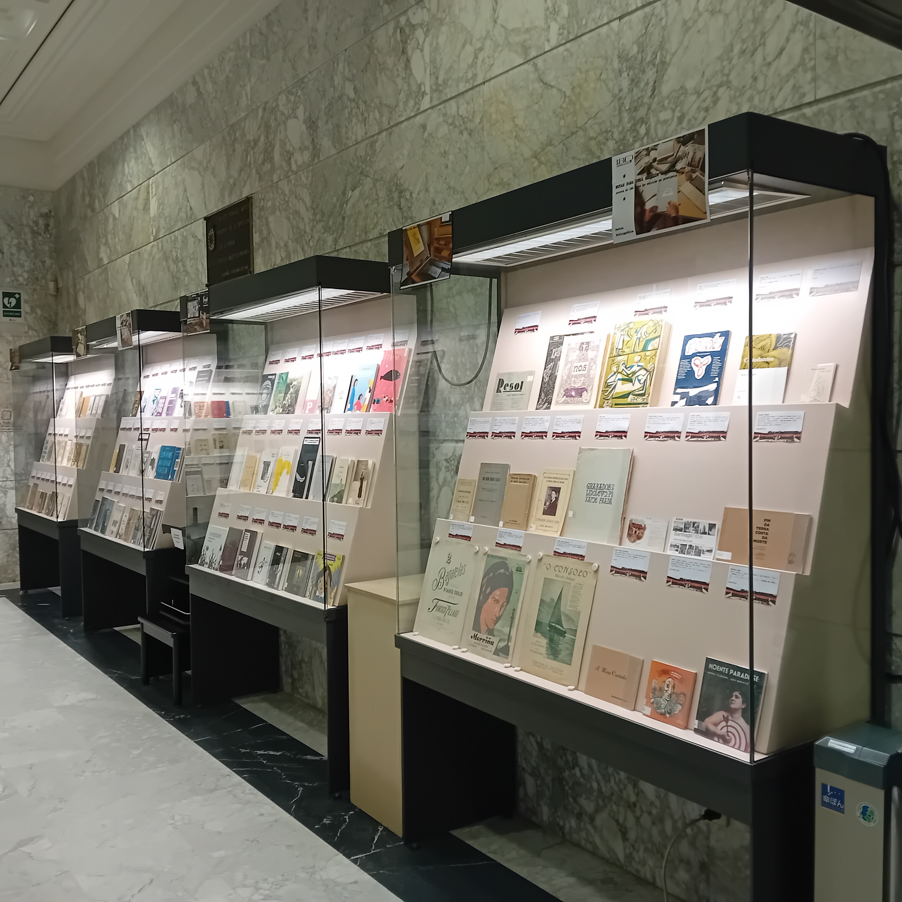 A través de sete vitrinas, exhíbese unha selección de editoriais coruñesas e dalgunhas das súas obras, ofrecendo unha visión sintética da súa actividade. Cada unha delas ocúpase dunha etapa da produción editorial coruñesa, reflectindo a súa evolución histórica.