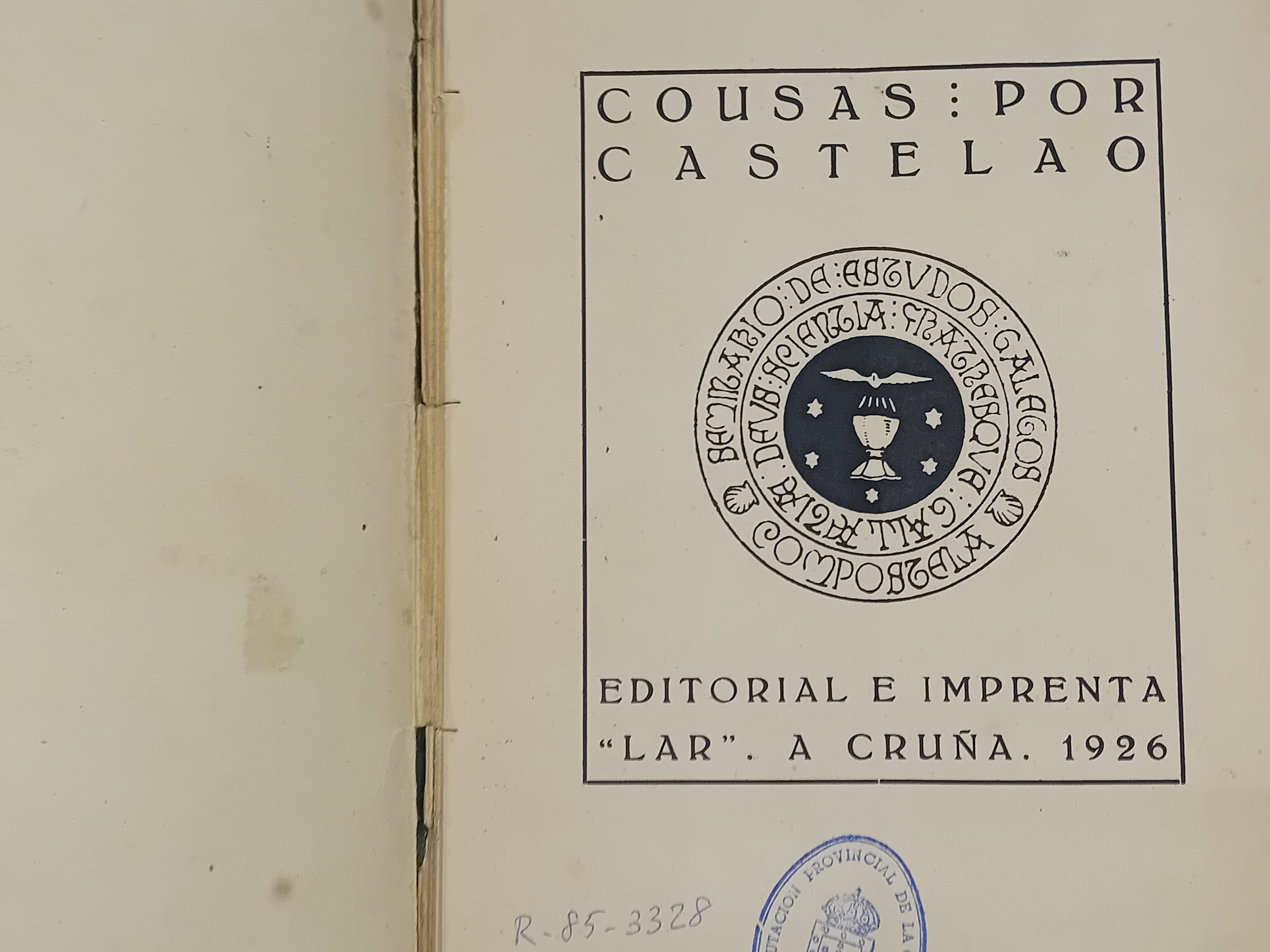 reúne un conxunto de 45 relatos breves acompañados dunha ilustración. Nestes relatos Castelao ofrece un mosaico da realidade galega do seu tempo: o mundo mariñeiro, a emigración, retratos de personaxes... As "Cousas" son a creación máis orixinal de Castelao e supoñen unha síntese entre a narrativa e a plástica. Foi traducida ao castelán,[69] ao italiano,[70] ao éuscaro, ao catalán, ao asturiano e ao inglés.