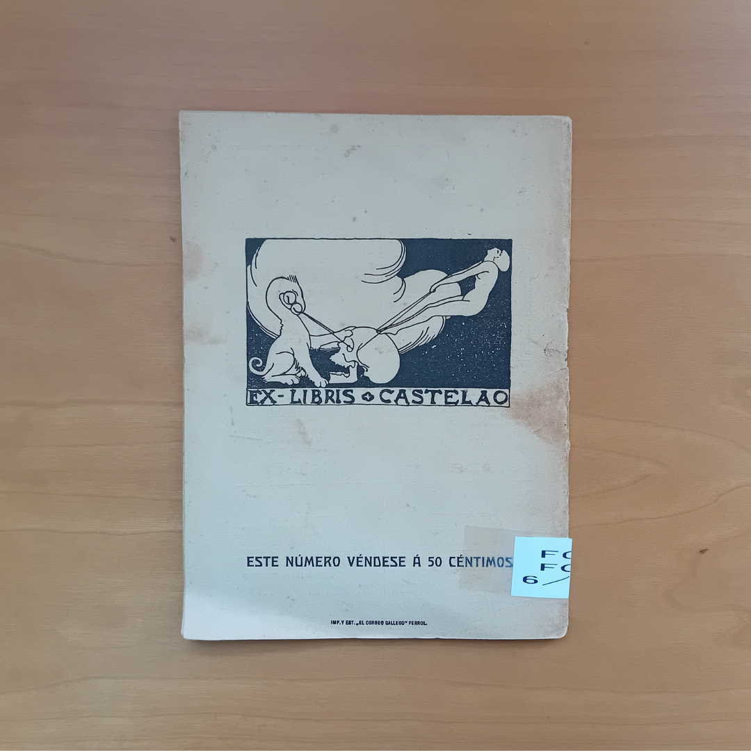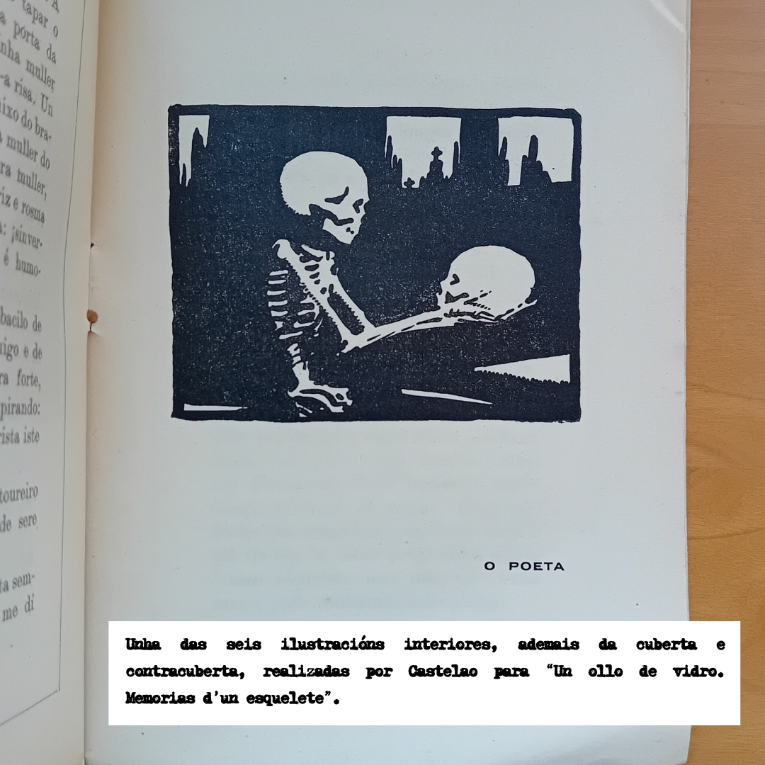 Un Ollo de vidro: memorias d'un esquelete de Castelao foi o número 7 destas novelas mensuais ilustradas. Un conxunto de narracións curtas, acompañadas por gravados do autor, aparentemente sinxelas pero moi coidadas, que amosan o humorismo tan propio do Castelao. Nesta edición orixinal da obra podemos apreciar detalles como un ex libris deseñado tamén por el mesmo.