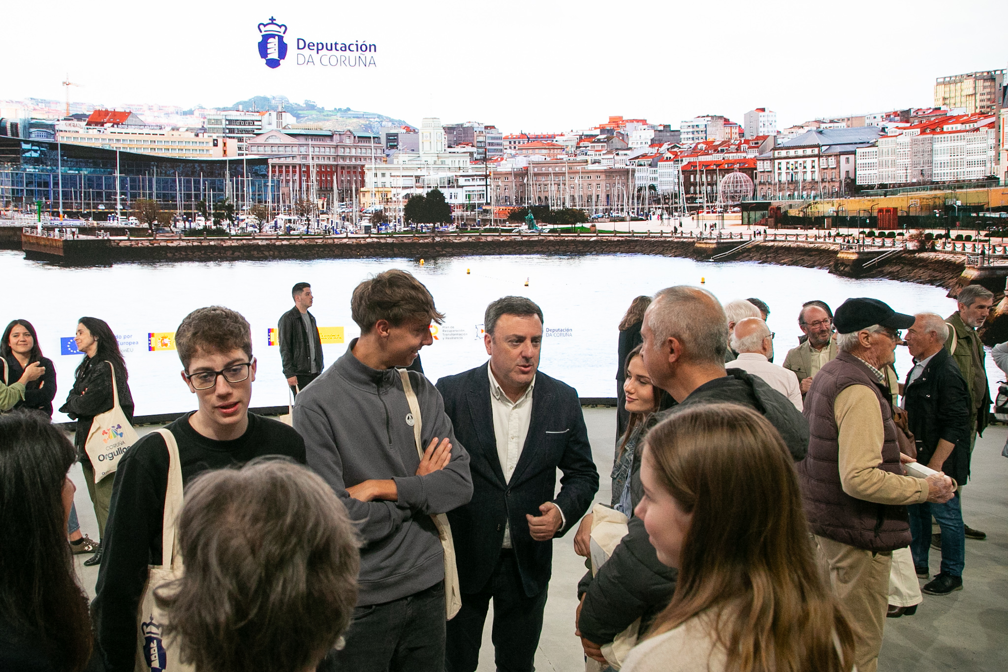 O presidente da Deputación da Coruña, Valentín González Formoso, participou esta tarde na visita guiada que a Deputación da Coruña ofreceu nas instalacións do Coruña Estudo Inmersivo (CEI) a arredor dun centenar de representantes de 34 asociacións de veciños e veciñas da cidade herculina.