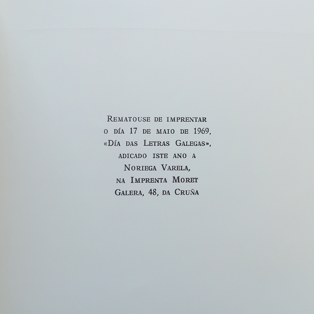 A cuberta é de Luis Seoane, unha figura moi ligada a Ediciós do Castro, tanto é así que el mesmo foi o responsable do nome da editorial e o primeiro en publicar nela.