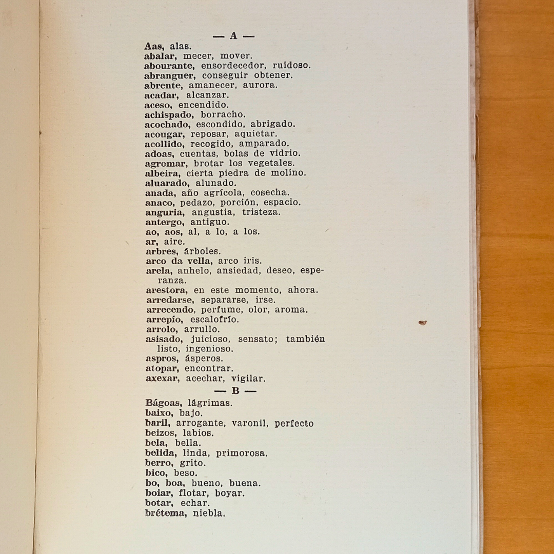 Romances Galegos é unha obra en galego publicada en Arxentina. O autor, moi consciente disto, deixa aos seus lectores un glosario de palabras galegas no que el mesmo fai as definicións. Algo que nos deixa unha idea clara: o galego como unha lingua universal que pode chegar a lectores de todo o mundo.