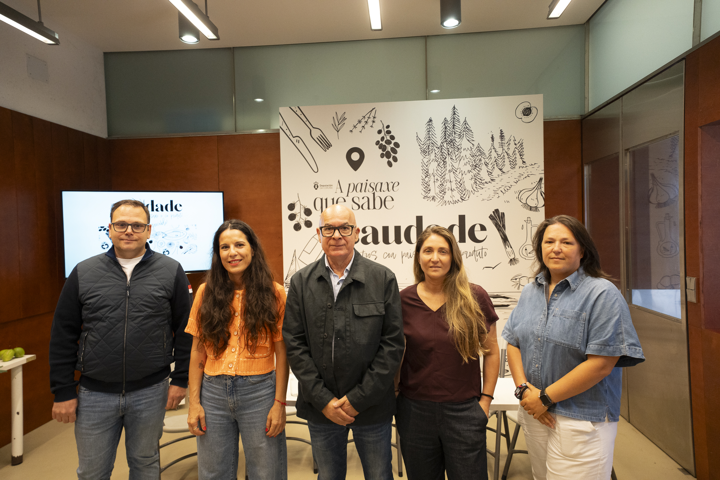 Fortalecer a identidade gastronómica da provincia da Coruña e fomentar a súa promoción en todo o Estado é o principal obxectivo do proxecto 'Saudade', presentado esta mañá polo vicepresidente da Deputación, Xosé Regueira, na praza de Abastos compostelá, nun acto no que tamén participaron os chefs Lucía Freitas e Manuel Costiña, e as produtoras Carmela Cano, de Queixo Galmesán e Graciela Castro, de Chichalovers, que formarán parte da programación deste evento.