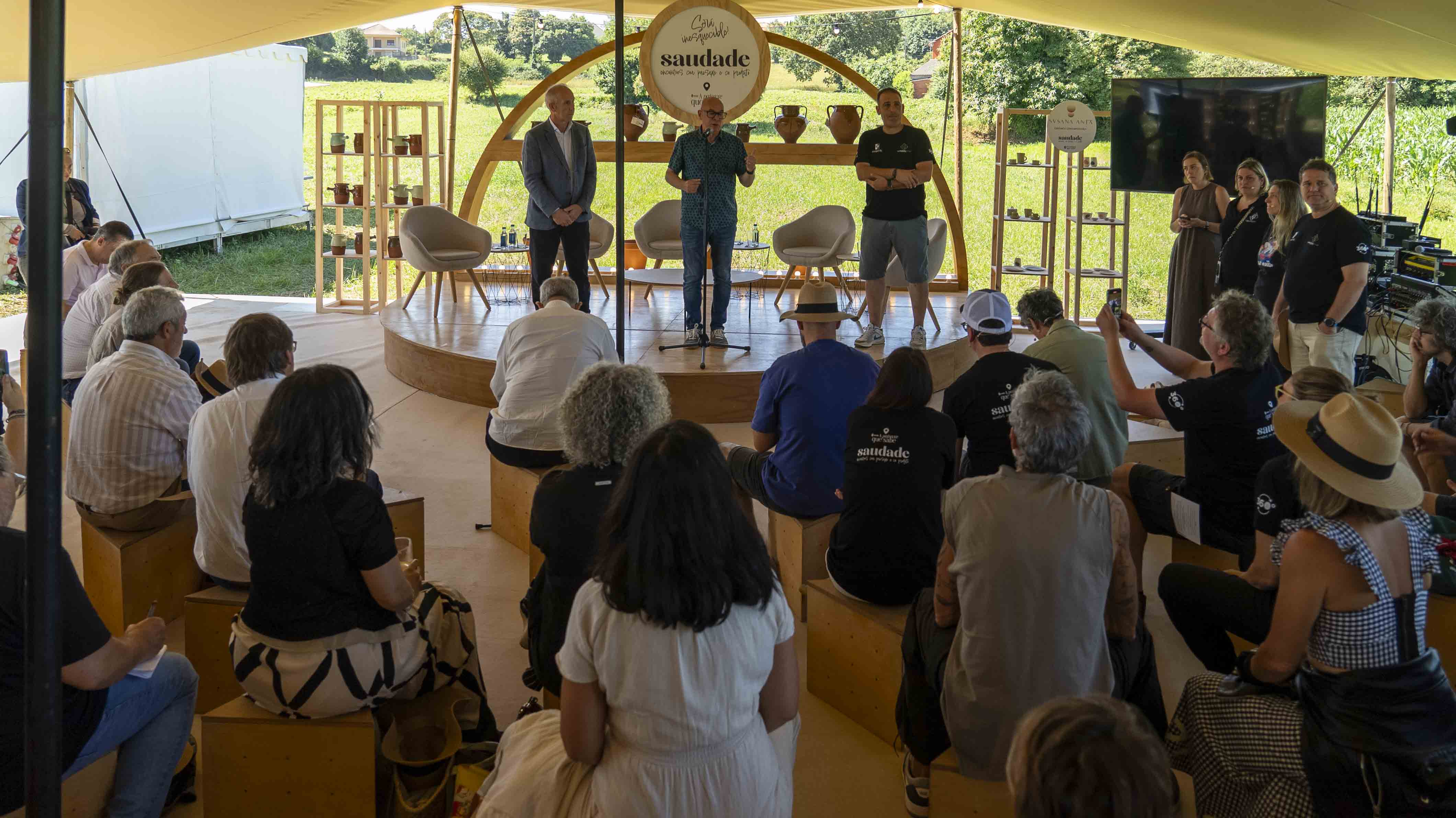 O ambiente foise caldeando entre a diversidade de olores dos produtos e do entorno, ata que deron comezo as mesas redondas. A primeira delas sobre 'Raíces sostibles: Produto, Territorio e Cultura Alimentaria', na que participaron o chef Paco Morales (3*) e a chef Lucía Freitas (1*), o divulgador científico José Miguel Mulet, e Lucía Calvo, da Despensa D'Lujo. E, a segunnda e última, 'Facer País: Innovación, Sustentabilidade e Paisaxe Emocional', cos chefs Maca de Castro (1*), Andoni Luis Aduriz (2*) e Xosé Cannas (2*), a xornalista gastronómica Lakshmi Aguirre, e Senén Barral, responsable do Departamento de Innovación, Infraestruturas e Servizos de Restauración de Inditex.