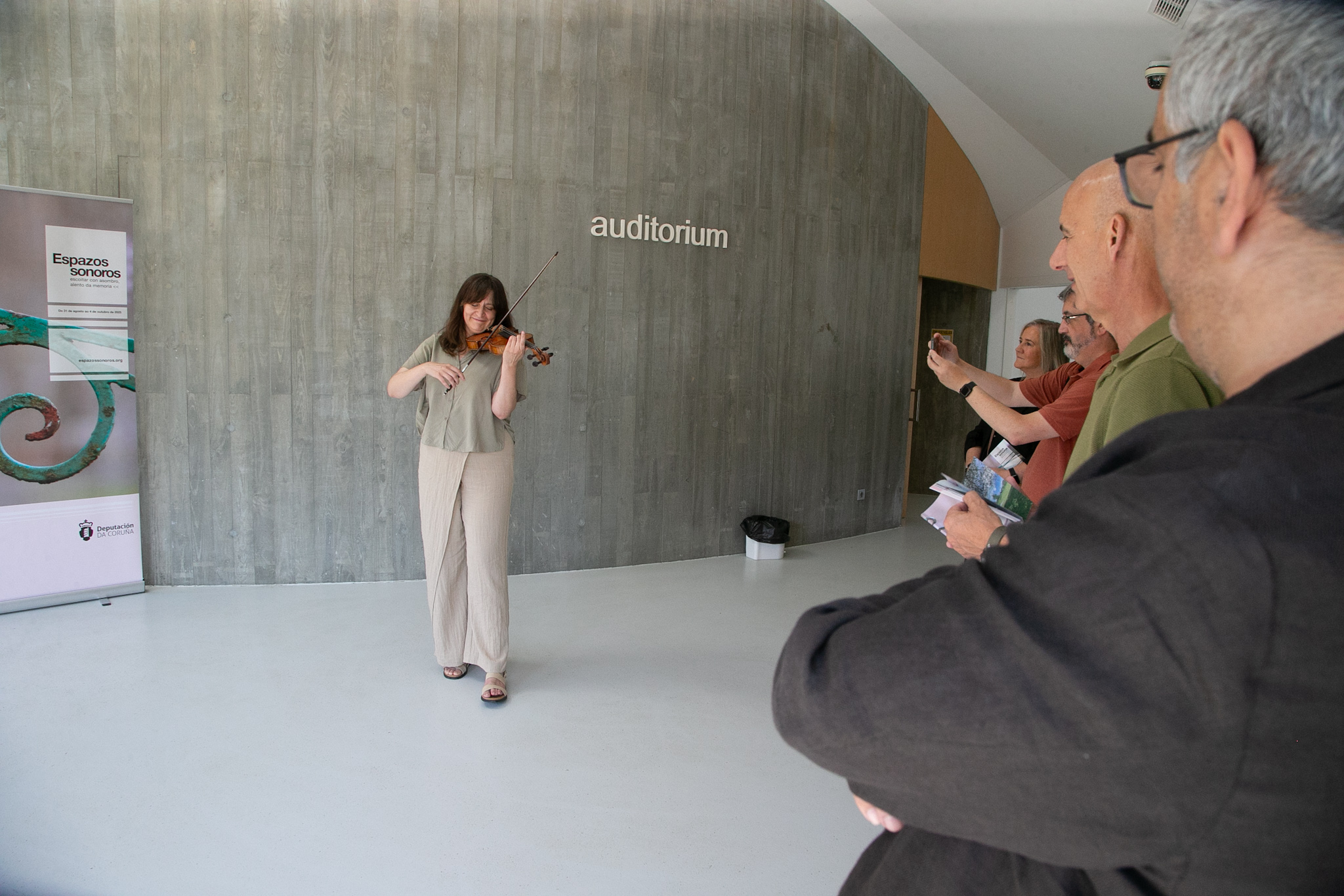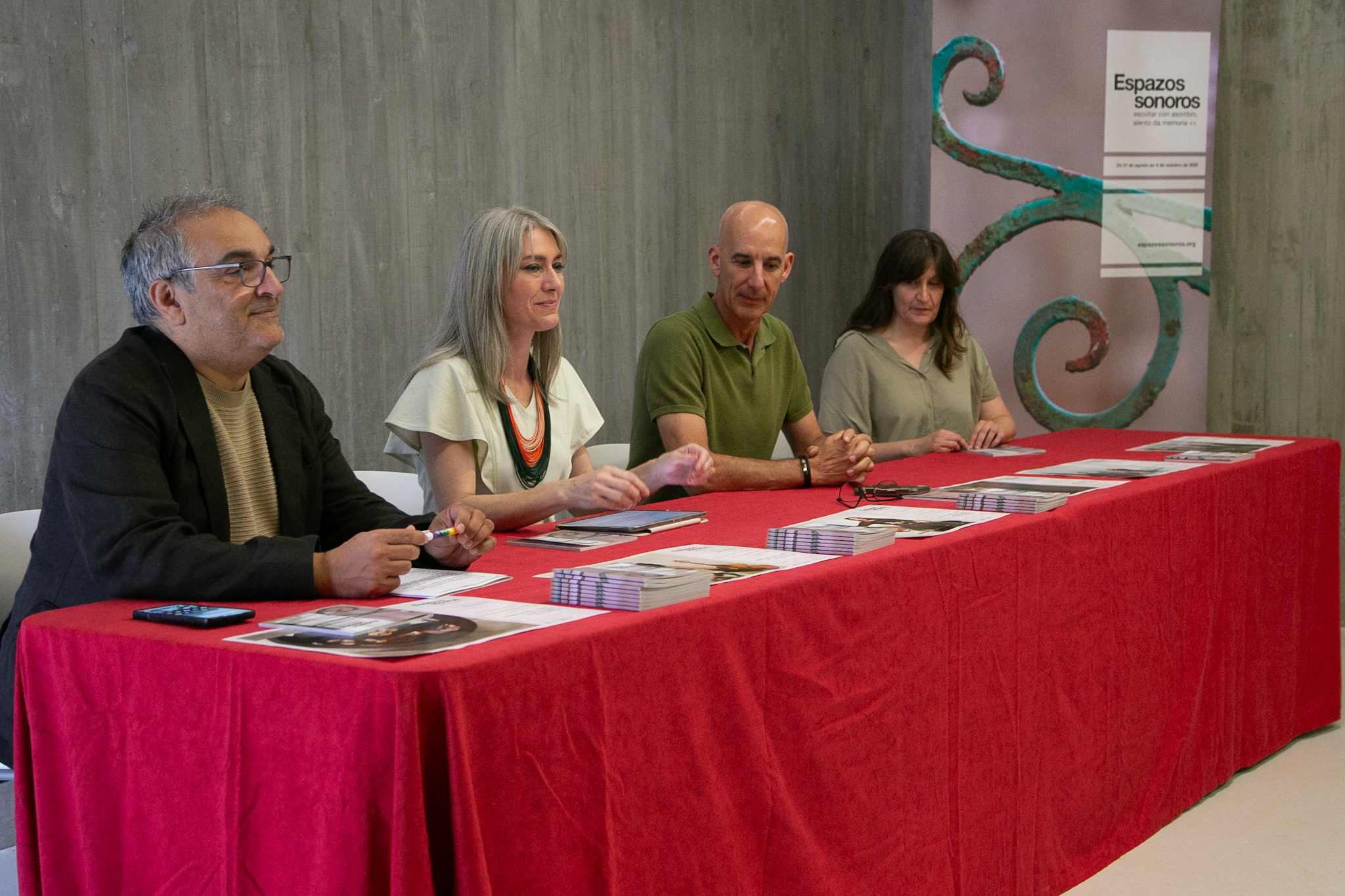 Co lema "Escoitar con asombro, alento da memoria", presentouse esta mañá no Centro Etnográfico de Teixeiro (Curtis) unha nova edición de Espazos Sonoros, o ciclo organizado polo departamento de Patrimonio e Contratación da Deputación da Coruña no que se dan a man a música antiga e o patrimonio cultural e arquitectónico da provincia. Na rolda de prensa interviron o deputado de Patrimonio, Xosé Penas; a directora artística do festival, Belén Bermejo, e o alcalde de Curtis, Javier Francisco Caínzos, quen deron paso á actuación musical de Maria José Pámpano, de Suelen Estar Quartet, unha das formacións protagonistas este ano.